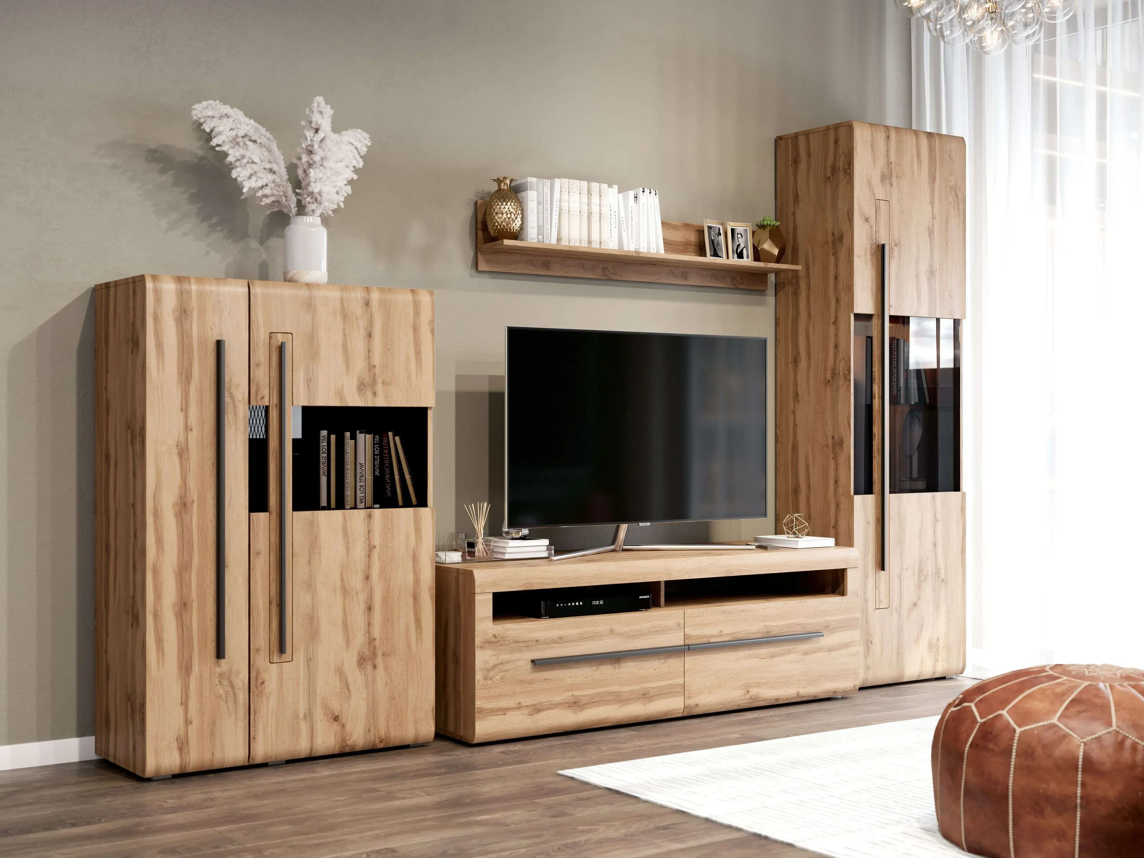 Двухдверный шкаф-витрина "Ницца" выполнен в популярных цветах Дуб Вотан и Дуб Винтерберг. Природные оттенки с рустикальной древесной текстурой принесут вашему интерьеру уютное тепло и комфорт.