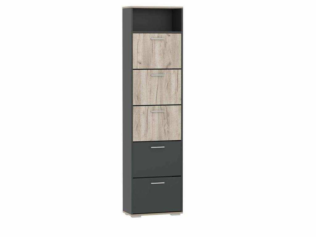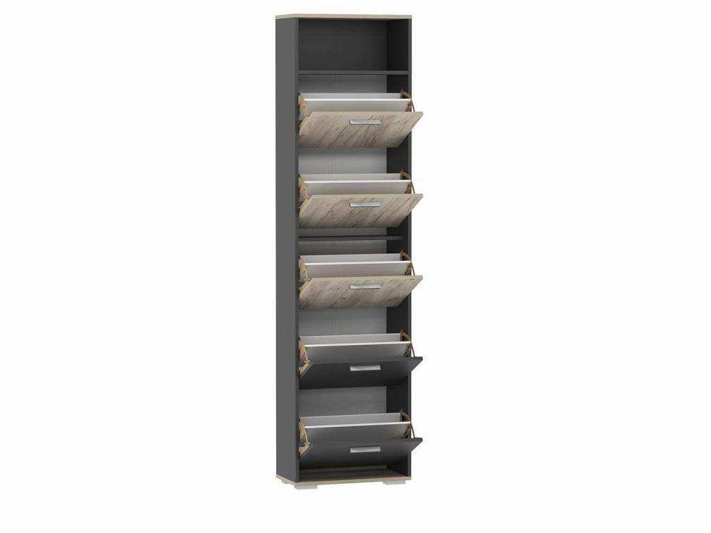 НМ 013.26 Тумба для обуви Санти Антрацит/Дуб крафт серый узкая модель для хранения обуви в прихожей или коридоре.