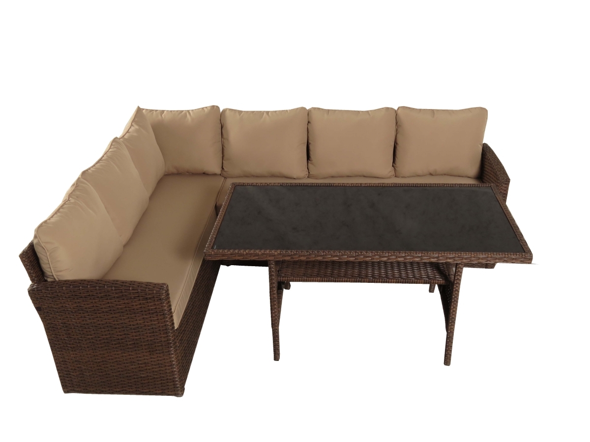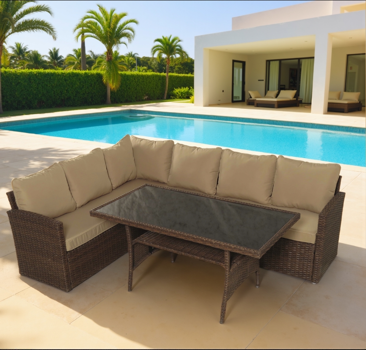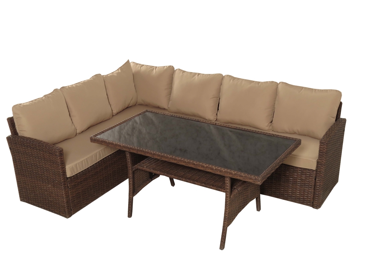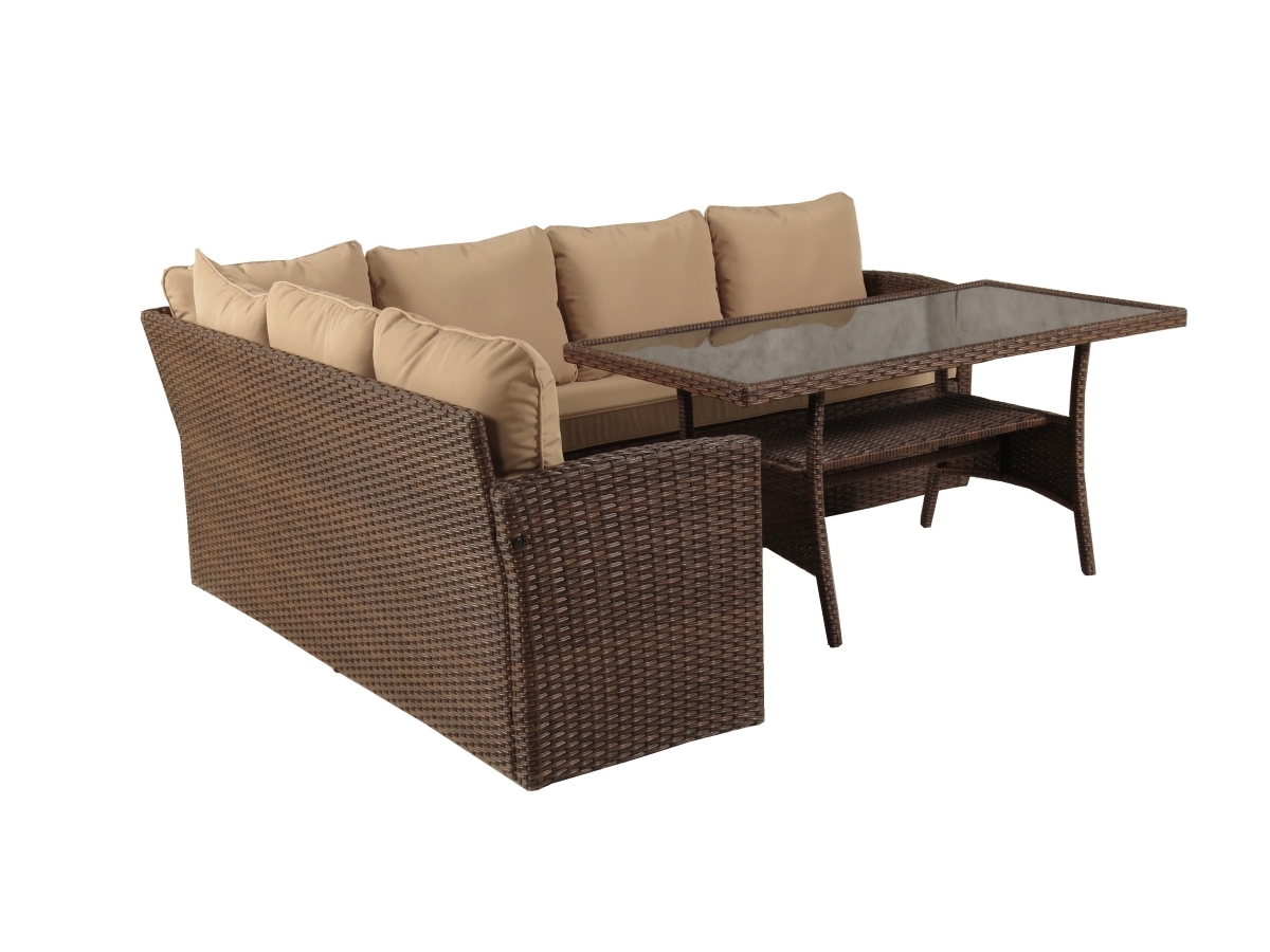 Угловой диван позволяют рационально организовать пространство, создавая дополнительное место для приема гостей или комфортного семейного обеда. Искусственный ротанг, использованный при изготовлении дивана, обеспечивает прочность и долговечность, сохраняя первоначальный внешний вид независимо от климатических условий.