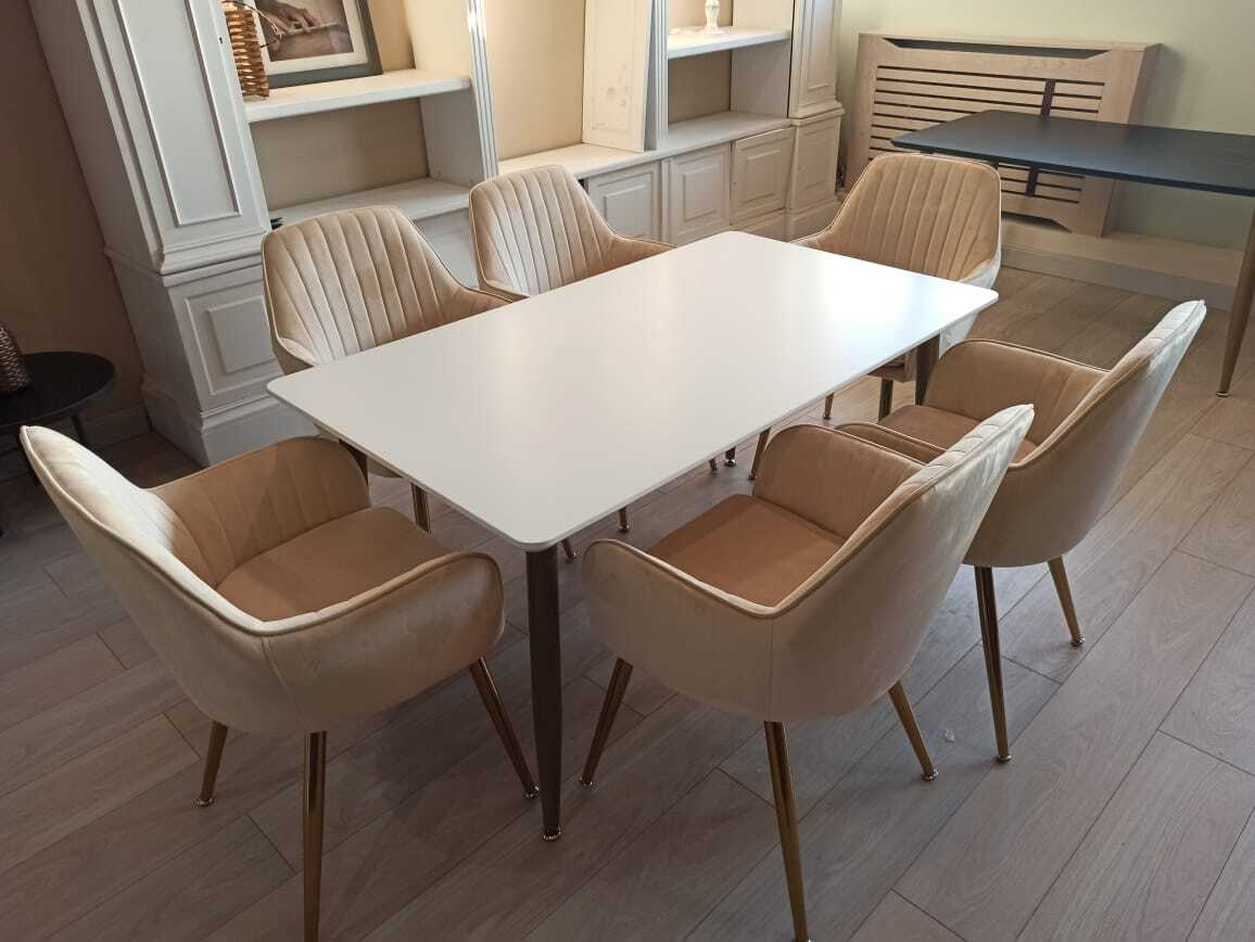 Обеденная группа стол ФАВОРИТ “FAVORITE” + 6 бежевых кресел Кристи “CHRISTY”