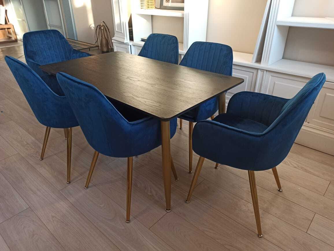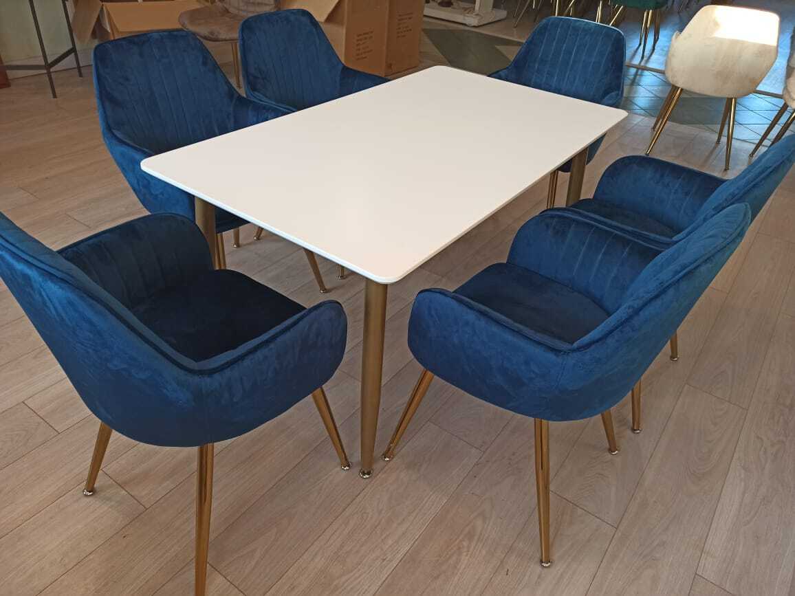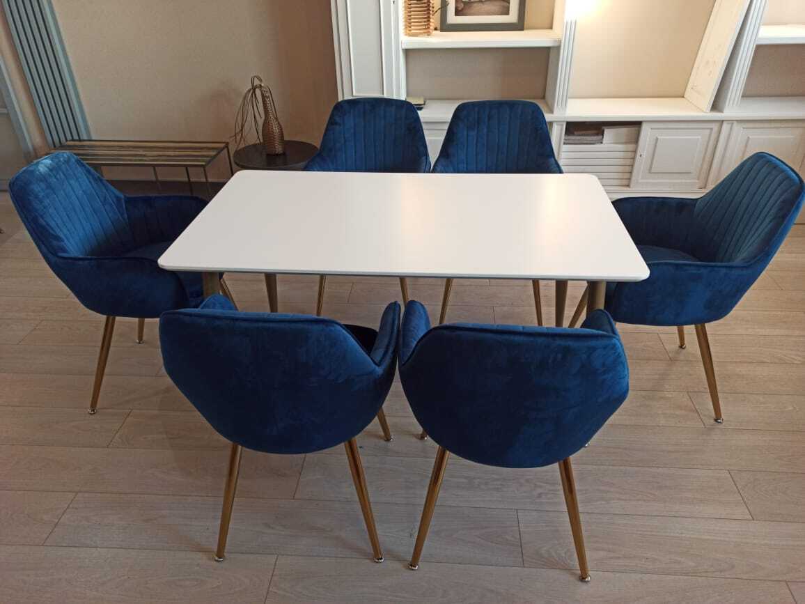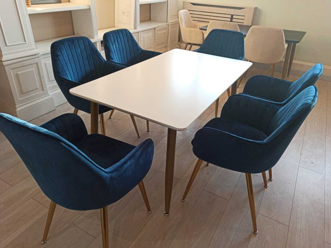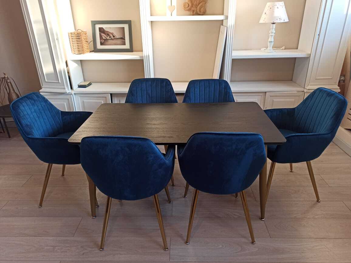 Обеденная группа стол ФАВОРИТ “FAVORITE” + 6 синих кресел Кристи “CHRISTY”