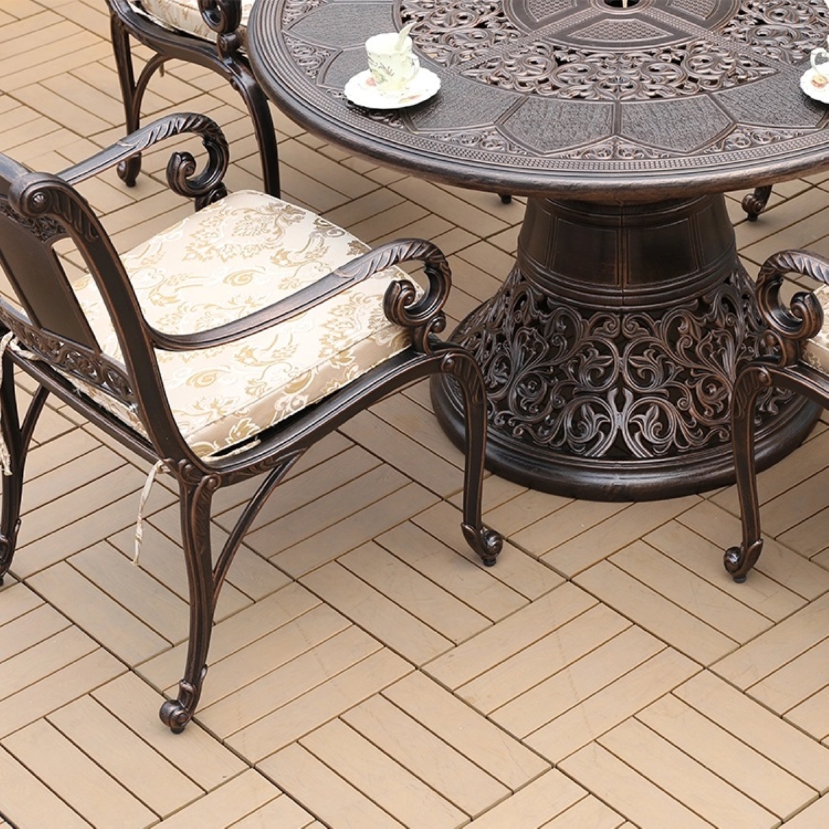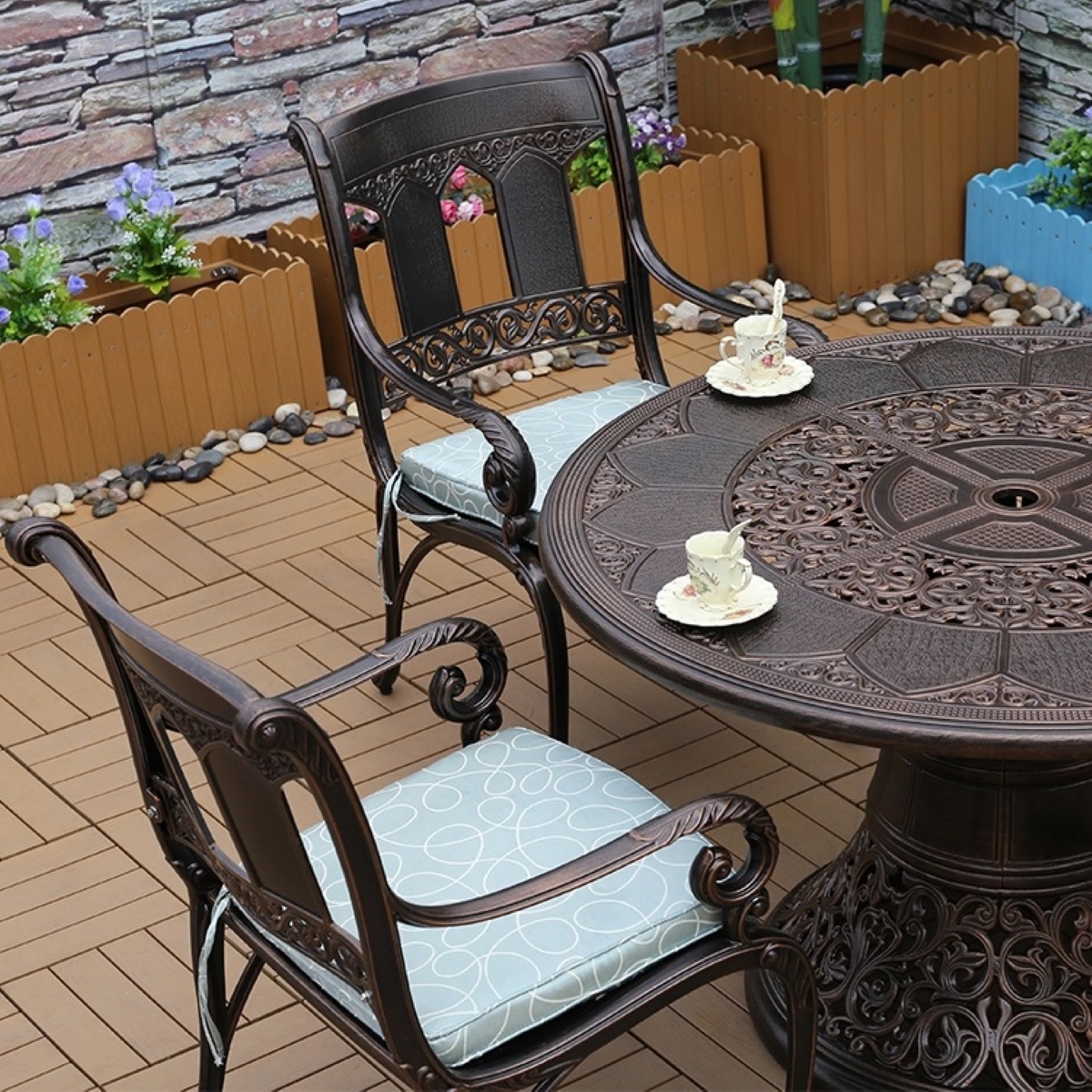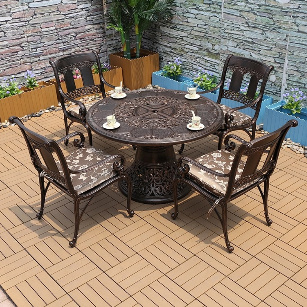 Обеденный комплект из литого алюминия стол Сандаловое дерево(118см)