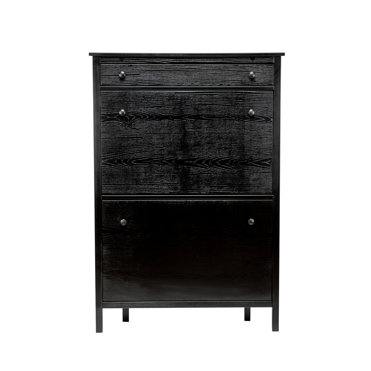Этажерка для обуви выполнена в сдержанном скандинавском стиле. Акцент сделан на ненавязчивом декоре из круглых металлических ручек, который поддерживает стилистику модели. Тумба доступна в двух универсальных цветах — белом и чёрном, что позволяет легко вписать её в любой интерьер.