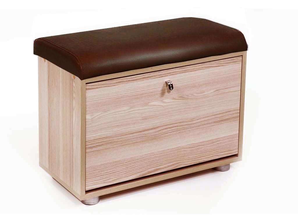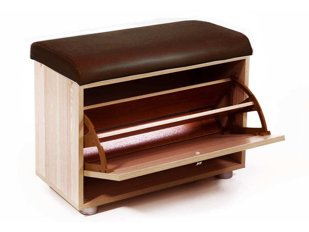 Конструкция с мягким сиденьем и откидной секцией для хранения обуви.