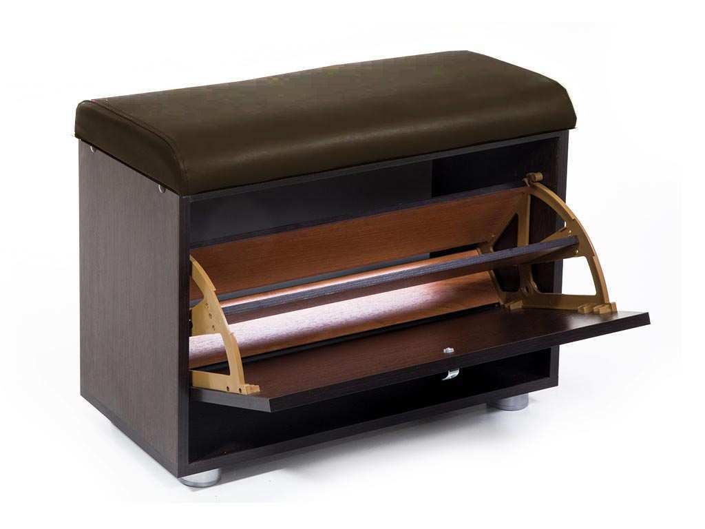 Конструкция с мягким сиденьем и откидной секцией для хранения обуви.