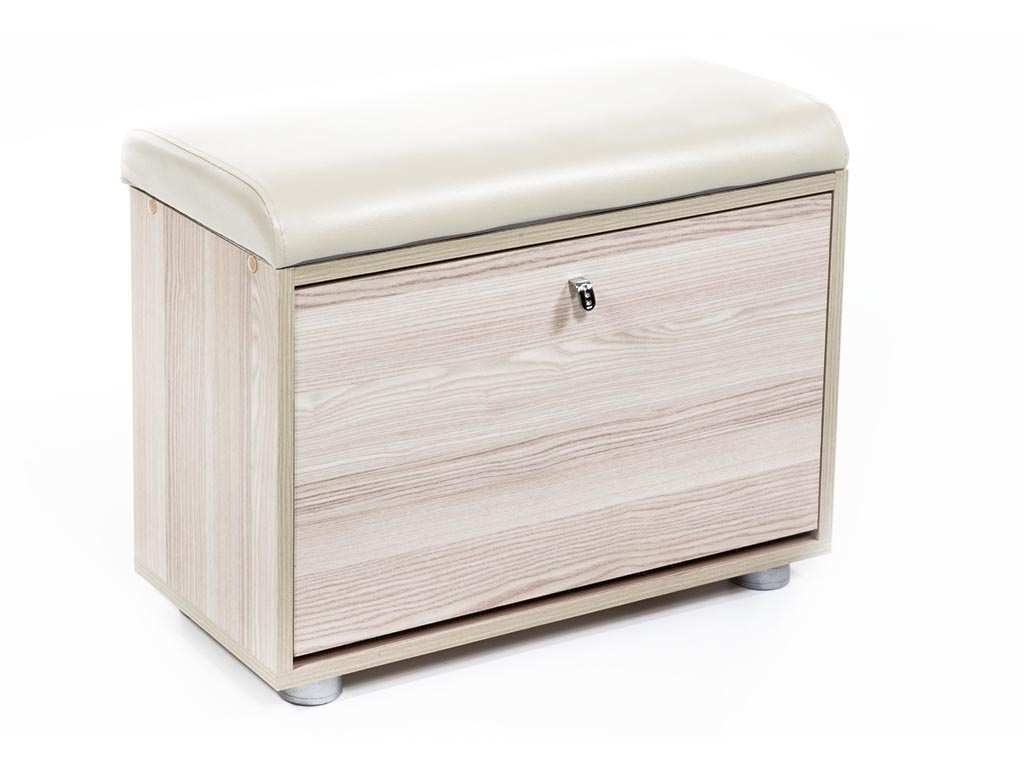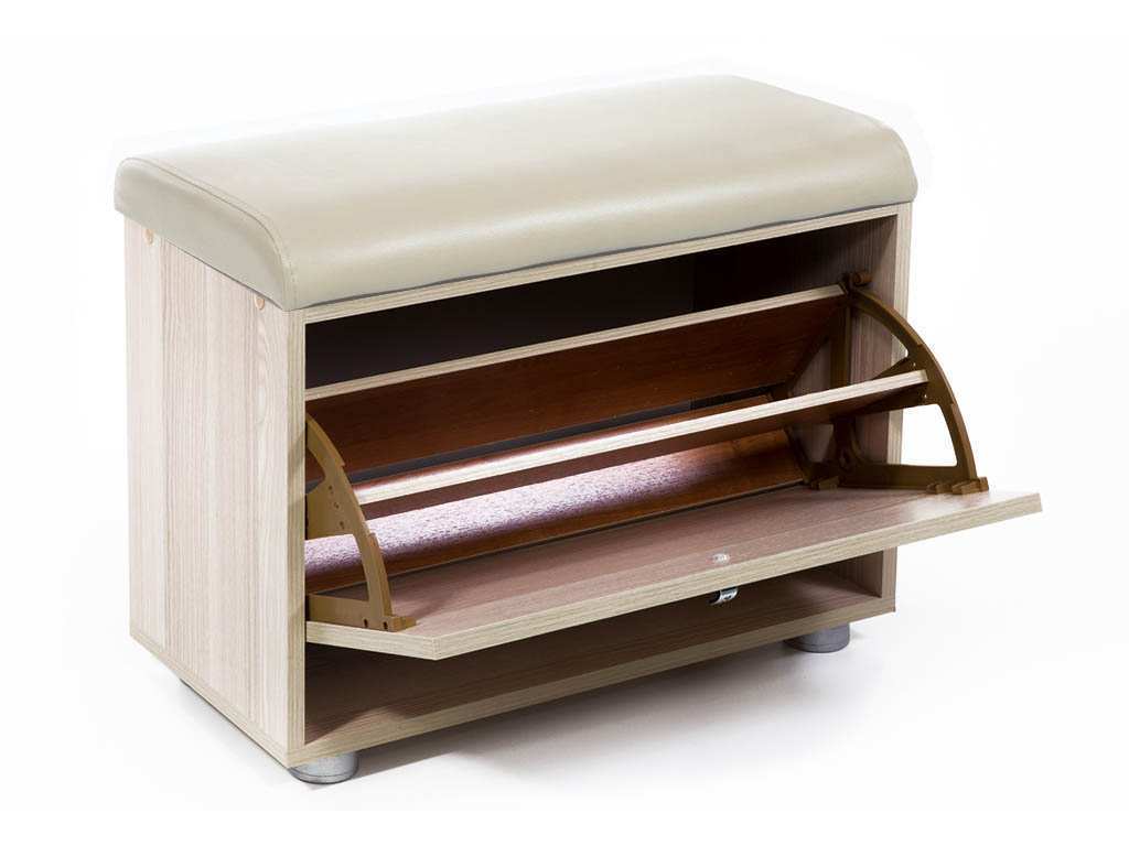 Конструкция с мягким сиденьем и откидной секцией для хранения обуви.