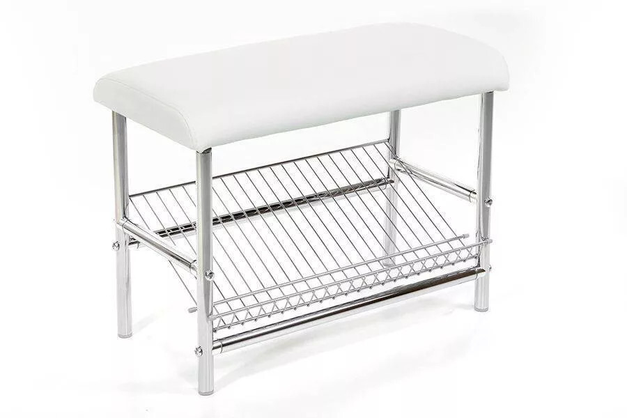 Практичная скамья с полкой для обуви. Обувница МС-4 с обивкой цвета милк сделает Вашу прихожую комфортной и удобной. Практичное решение, надежное в эксплуатации.