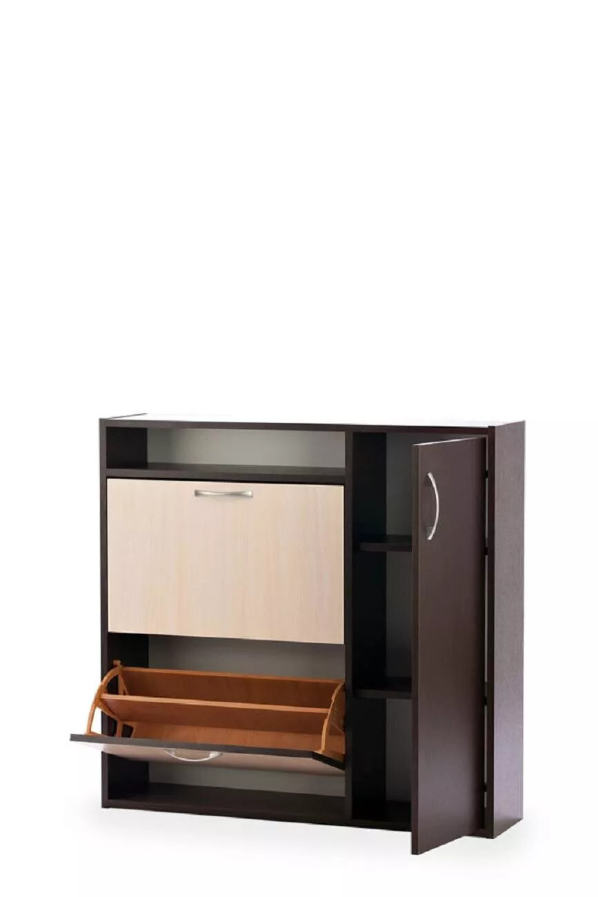 Классический вариант обувницы ШК-2 вмещает в себя двенадцать пар обуви. С правой стороны располагается дверца, за которой находится две полки.