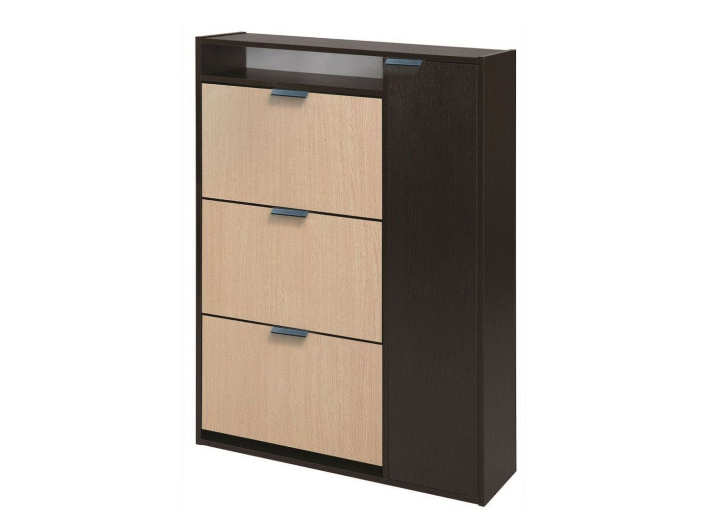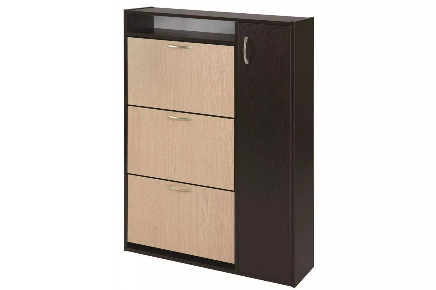 Компактная и вместительная обувница ШК-3 позволит разместить до двенадцати пар обуви. Тумба оснащена нишей для мелочей и небольшим шкафчиком, за дверцами которого располагается три полки.
