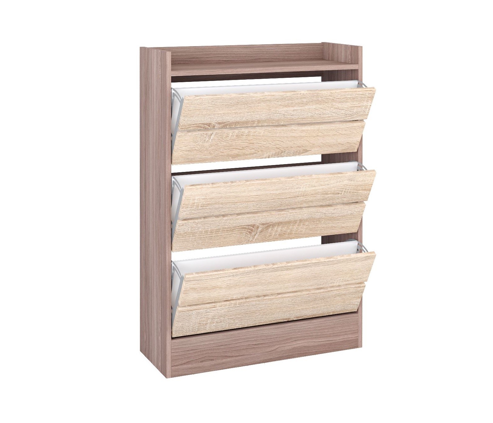 Обувница Ямайка - функциональный вариант хранения Вашей уличной и домашней обуви и гарантия порядка в прихожей. Модель имеет увеличенную ширину и 3 откидные ниши, в которых поместятся сразу несколько пар обуви. Сверху Вы можете расположить ключи, аксессуары и другую мелочевку, без которой не обойтись во входной зоне. Модуль прекрасно сочетается с зеркалом из данной коллекции.