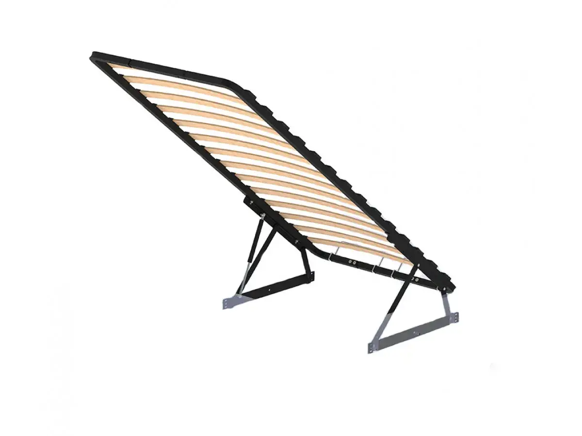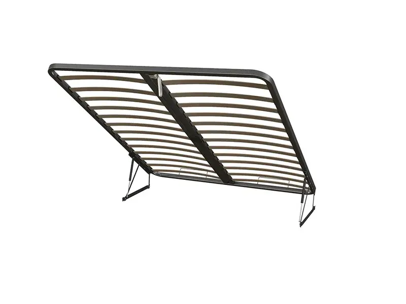 Ортопедическое основание состоит из металлического каркаса и деревянных ламелей. Такое сочетание материалов делает конструкцию основания надежной и долговечной.