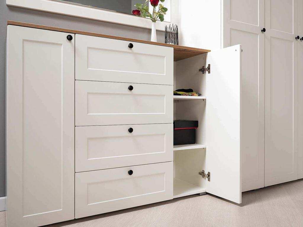 Остин Комод 16.221 Белый шагрень/Дуб Вотан вместителен и функционален.