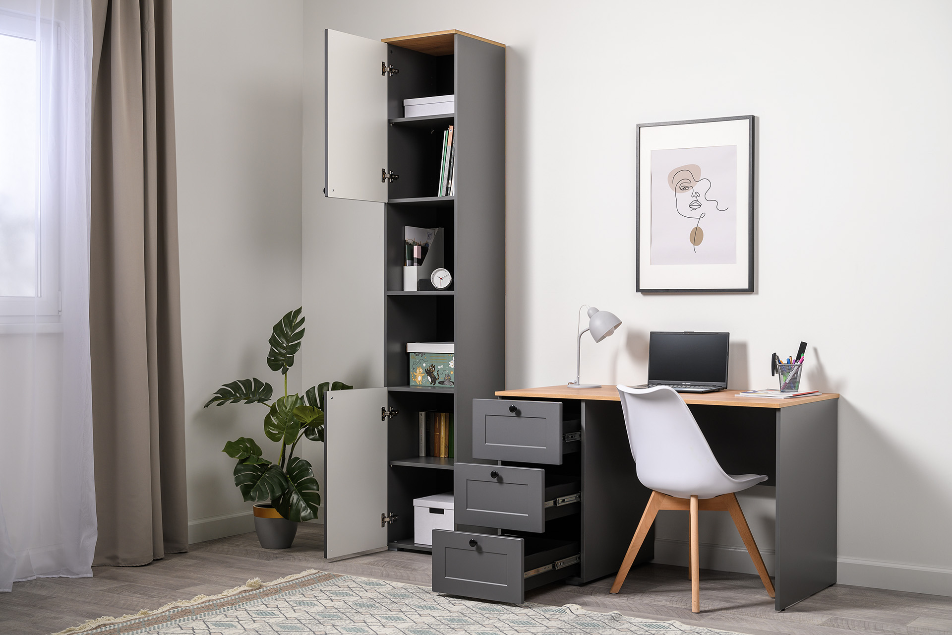 Остин Стеллаж 16.427 Серый графит/Дуб Вотан подходит для хранения различных предметов в современном интерьере любой комнаты.
