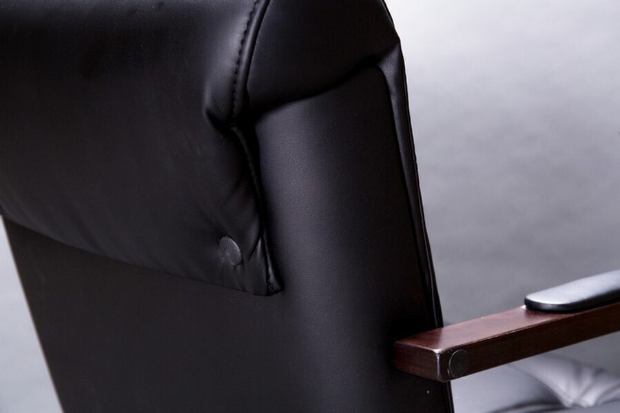 Особое внимание уделено деталям: деревянные подлокотники с мягкими накладками не только подчёркивают благородство стиля, но и обеспечивают максимальный комфорт при длительной работе. Дополняют общий образ деревянные полозья, придающие креслу уникальный, солидный вид.