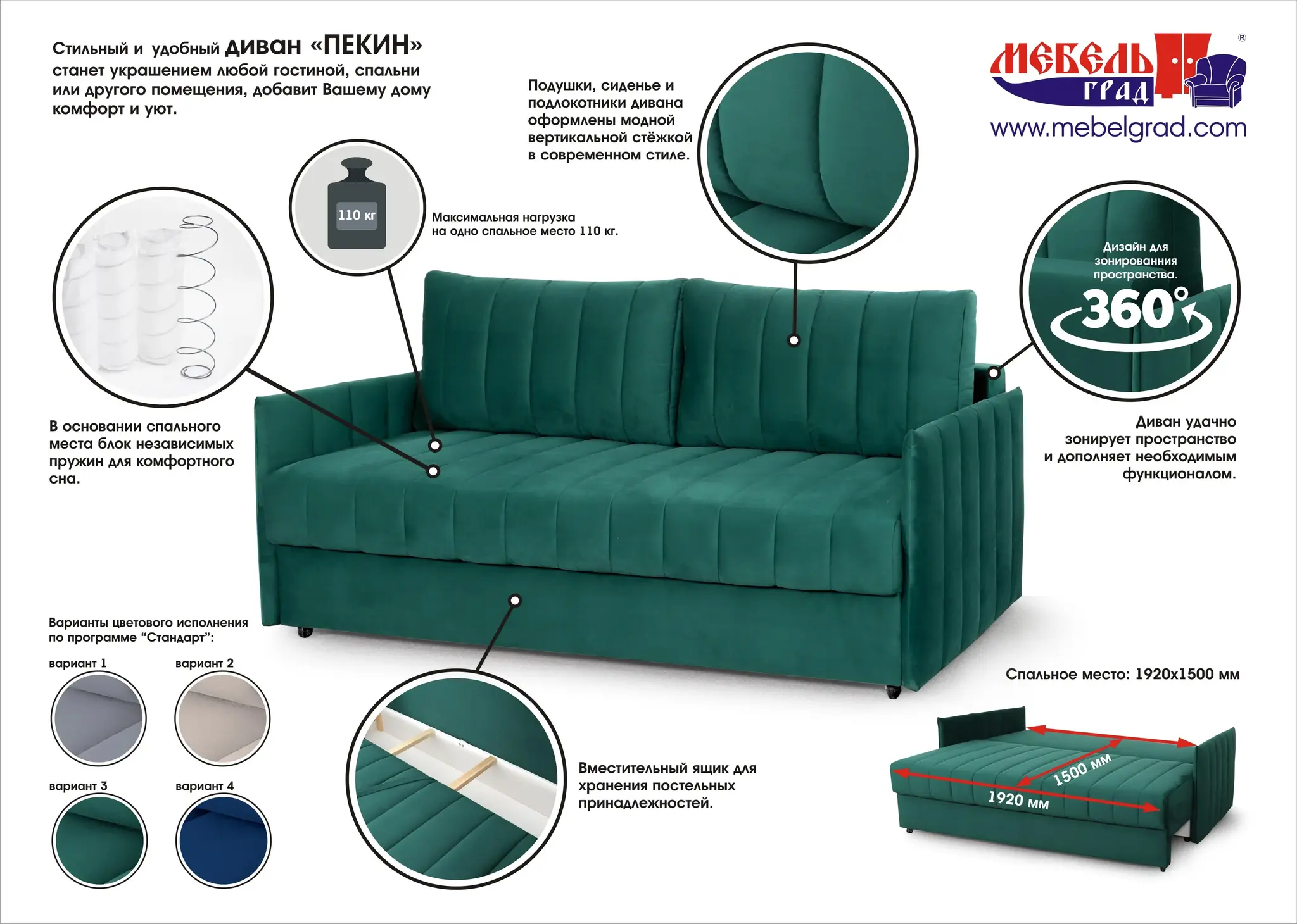 Стильный и удобный диван "Пекин" станет украшением любой гостиной, спальни или другого помещения, добавит Вашему дому комфорт и уют.