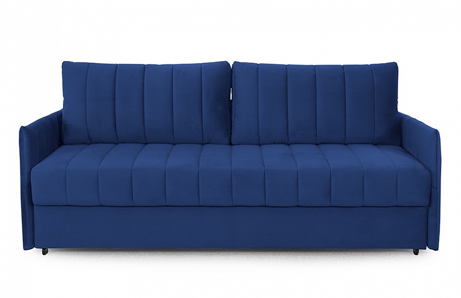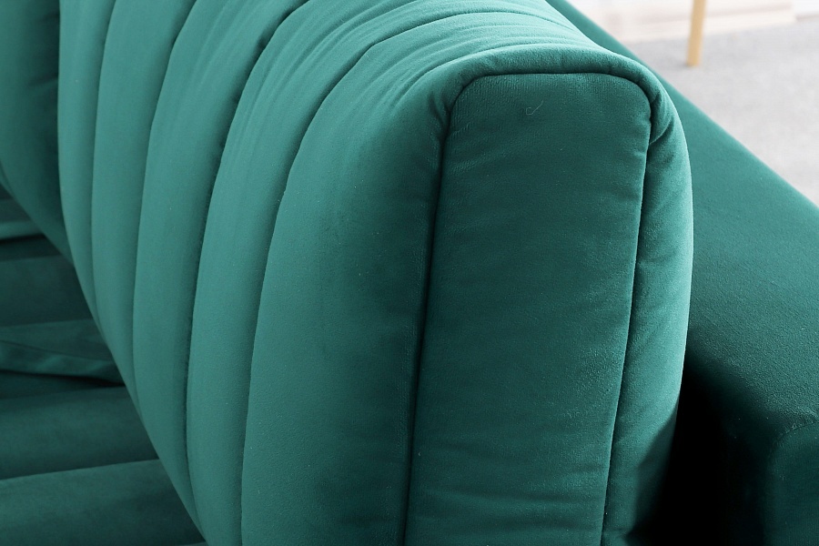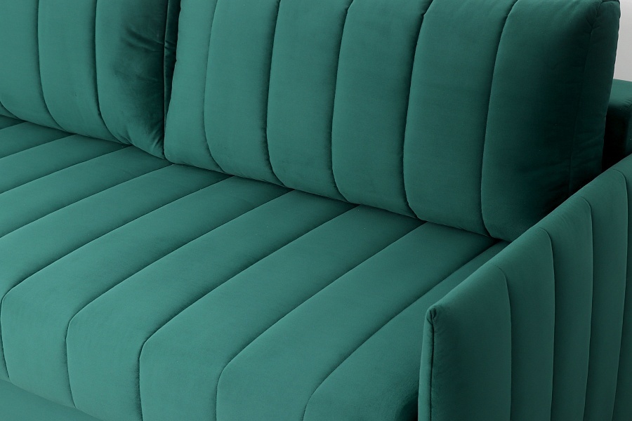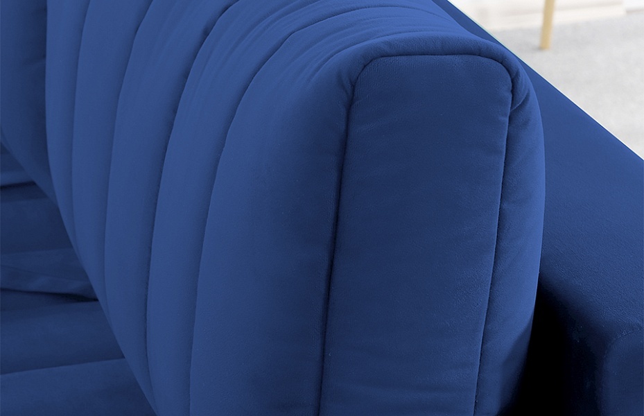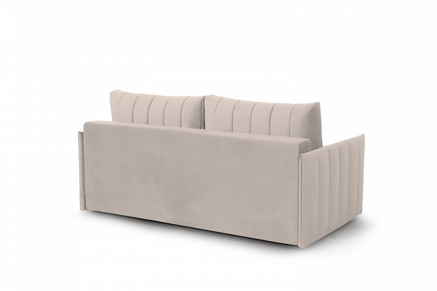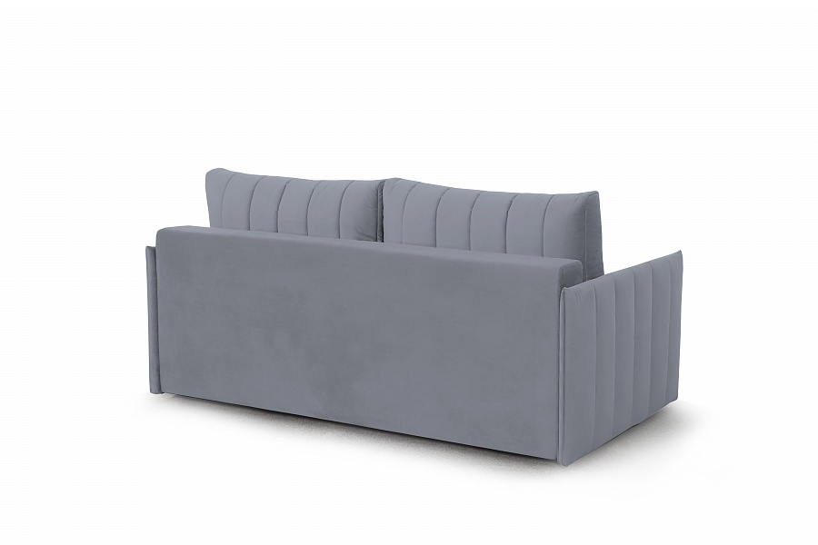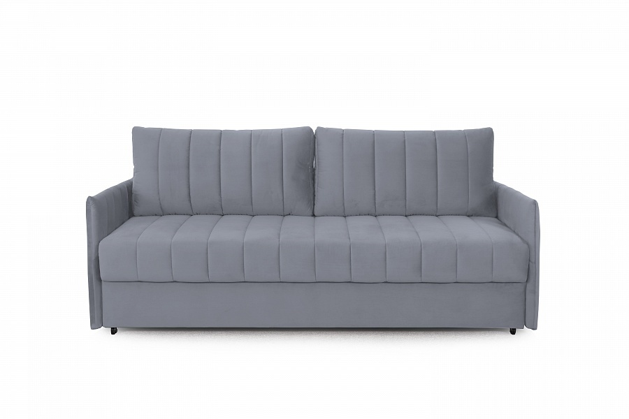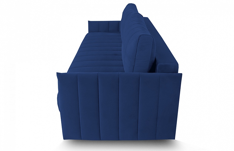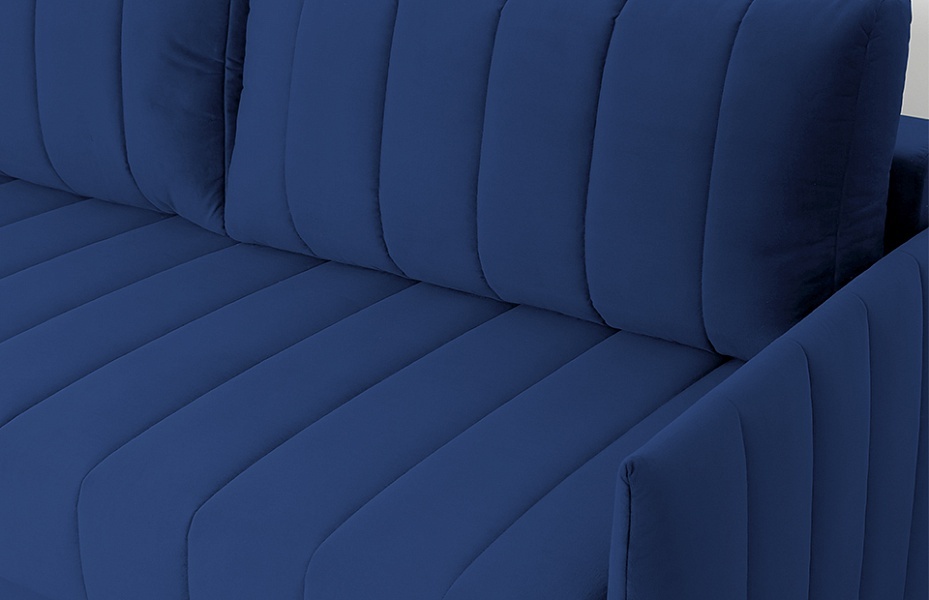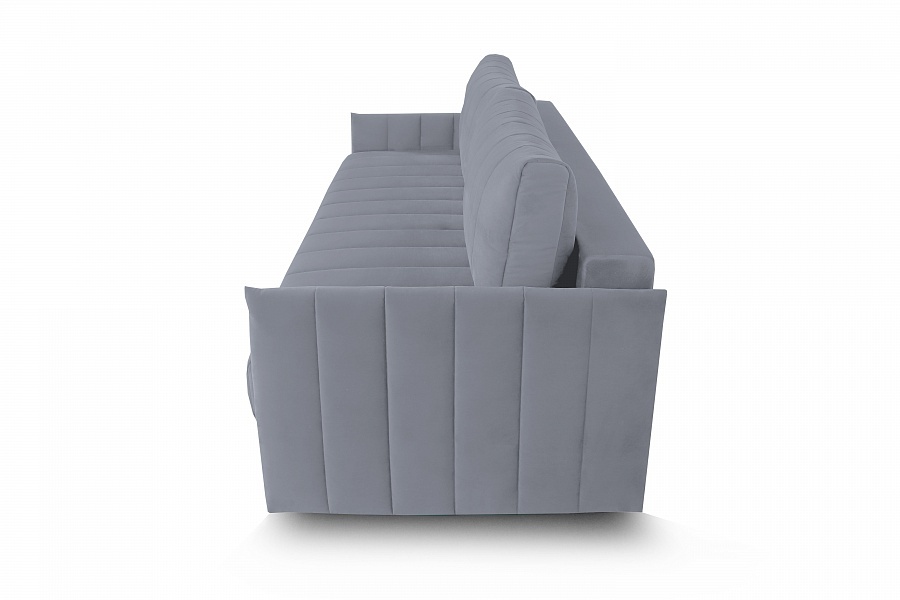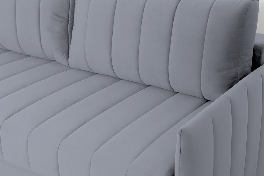 Подушки, сиденье и подлокотники дивана оформлены модной вертикальной стёжкой в современном стиле.