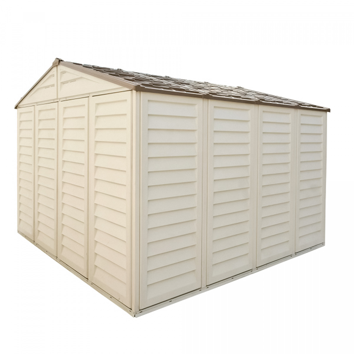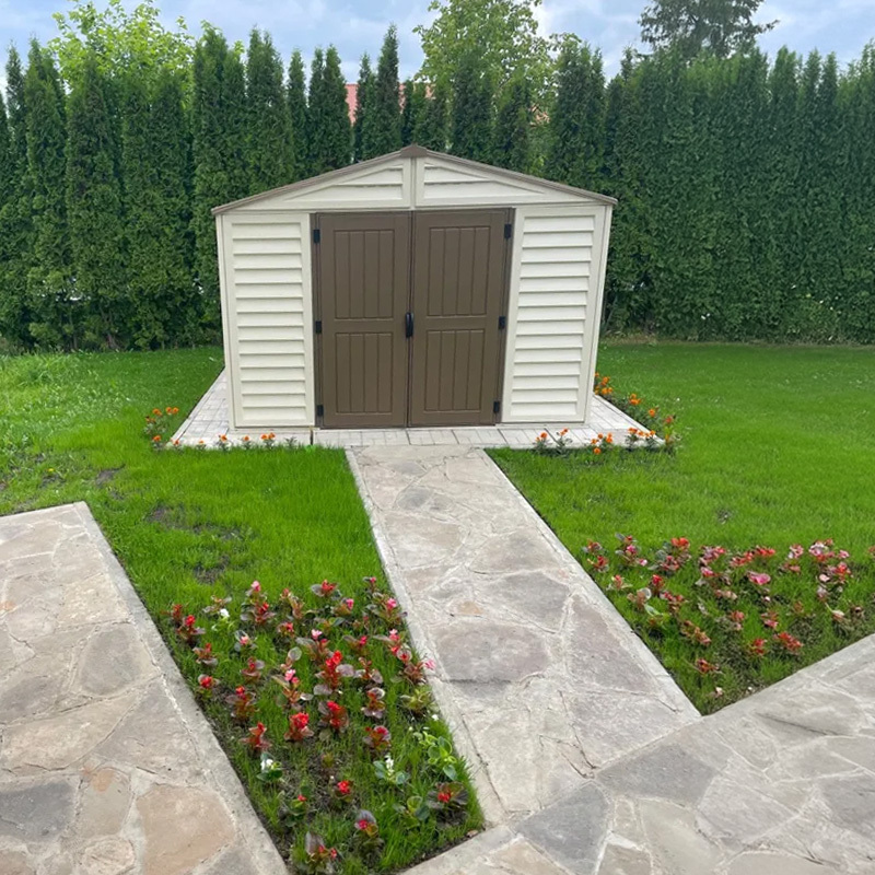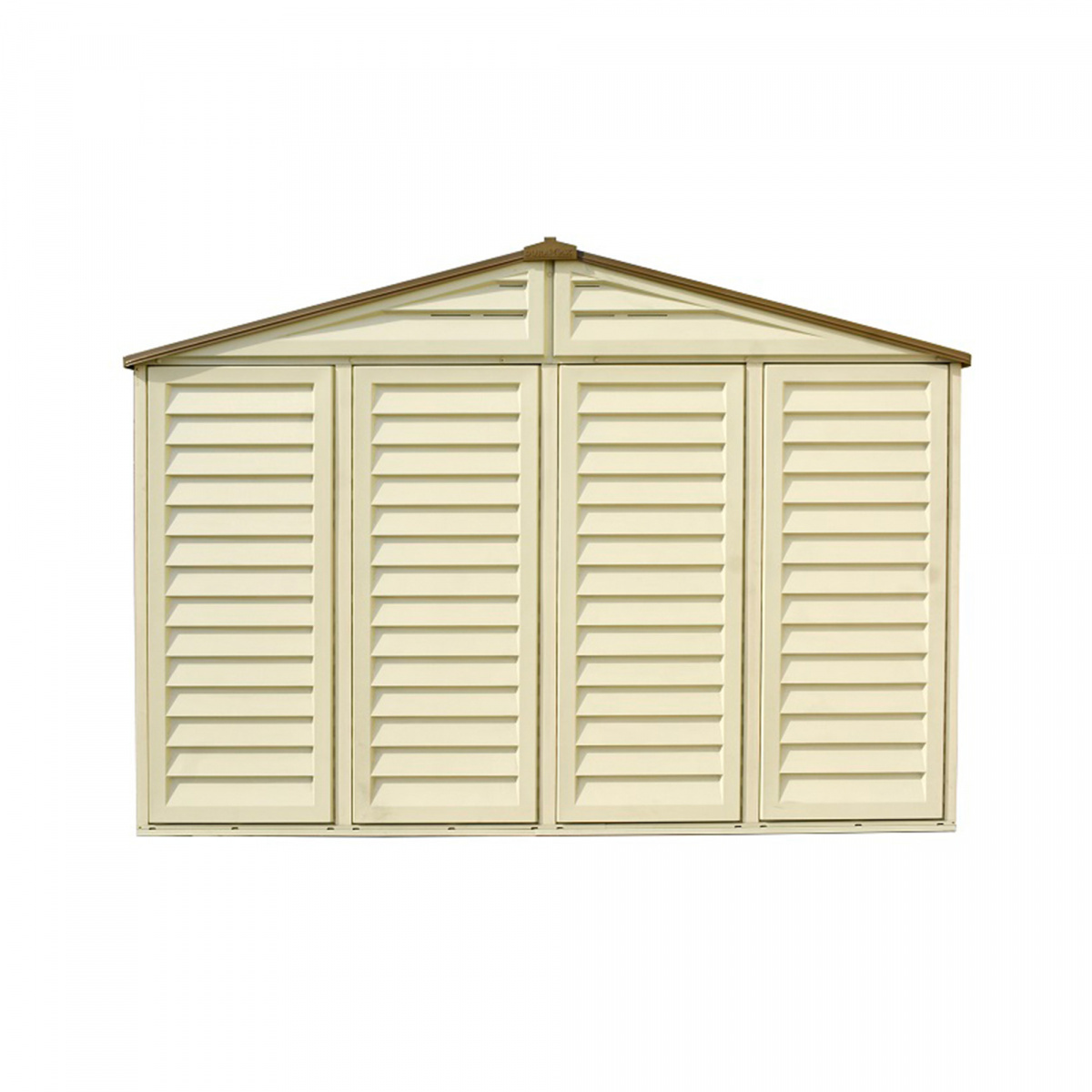 Пластиковый сарай WoodBridgePlus является наилучшим решением для всех ваших потребностей хранения. Подходит для хранения велосипедов, садового инвентаря, малых электрогенераторов, лестниц-стремянок и т.д. Сарай оснащен высокими и широкими двойными дверями. Настенные колонны усилены прочной металлической конструкцией, которая придает сараю прочность, а также позволяет устанавливать полки или вешать садовый инвентарь. Сарай изготовлен из огнестойкого прочного винила, армированного сталью. Хозблок не ржавеет, не оставляет вмятин, не гниет, не покрывается плесенью и не выцветает. Оснащен системой пассивной вентиляции- улучшенная циркуляция воздуха благодаря вентиляционным щелям в фронтонной панели.