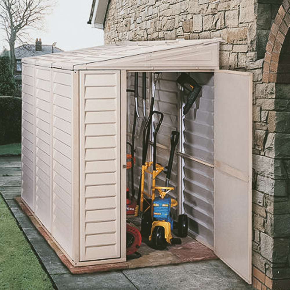 Пластиковый сарай SideMate - это простое в сборке решение для хранения на открытом воздухе, предназначенное для размещения сбоку от вашего дома. Современный дизайн украсит любой задний двор, максимально увеличивая пространство для хранения дворовых инструментов или садового инвентаря. Изготовленный из прочного всепогодного винила нейтрального цвета слоновой кости, виниловый навес SideMate не требует технического обслуживания. Он никогда не будет нуждаться в покраске или обработке. Он не ржавеет, не оставляет вмятин, не гниет, не покрывается плесенью и не выцветает. Винил, в отличие от полиэтилена, является огнезащитным и безопасным для хранения легковоспламеняющихся предметов. Настенные колонны усилены прочной металлической конструкцией, что придает сараю большую прочность и позволяет легко вмешать внутри полки или садовый инвентарь. В комплект фундамента входит оцинкованный металлический фундамент.