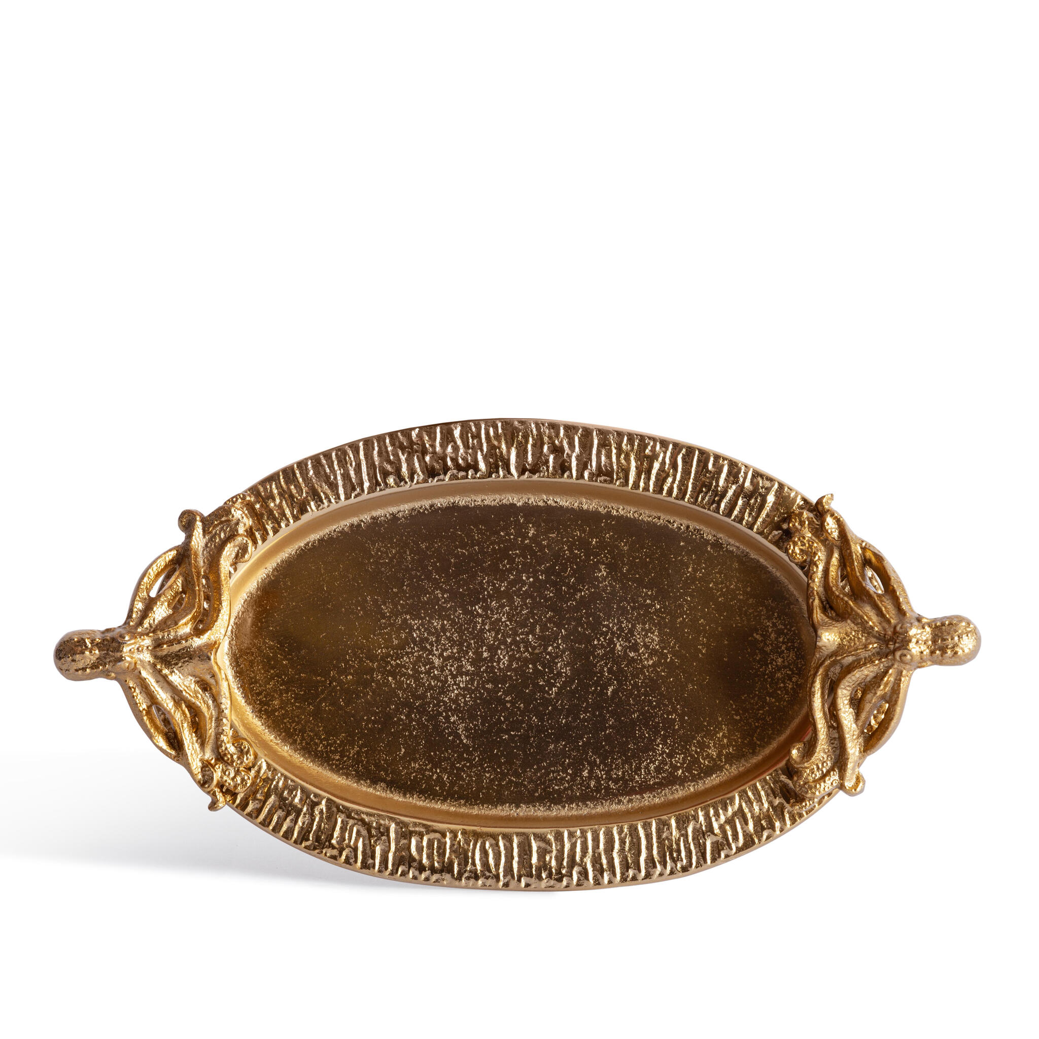 Изысканный поднос Secret De Maison OCTOPUS2 из коллекции SILVER – роскошный штрих в вашем загородном доме или городской квартире. Этот аксессуар станет прекрасным дополнением к вашему интерьеру, придавая ему особый шарм и богатство. Необычный поднос, изготовленный из алюминиевого сплава и декорированный осьминогами, является идеальной подставкой для свечей, косметики, украшений или парфюма. Металлический материал обеспечивает высокую прочность и долговечность изделия. Оригинальный дизайн и овальная форма подноса добавляют ноту элегантности и великолепия в вашу гостиную, столовую или спальню. Золотистое покрытие (Gold) придает изделию блеск, привлекательность и индивидуальность. Элегантный поднос не требует специального ухода, будет радовать вас своим первоначальным внешним видом на протяжении длительного времени.