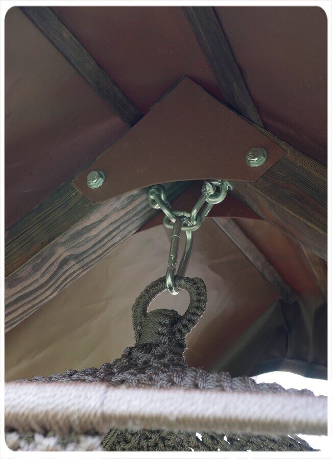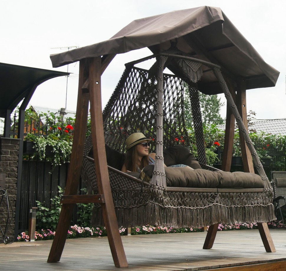 Подвесные плетеные качели СЕАРА+Деревянный каркас КАРАВЕЛЛА с крышей
