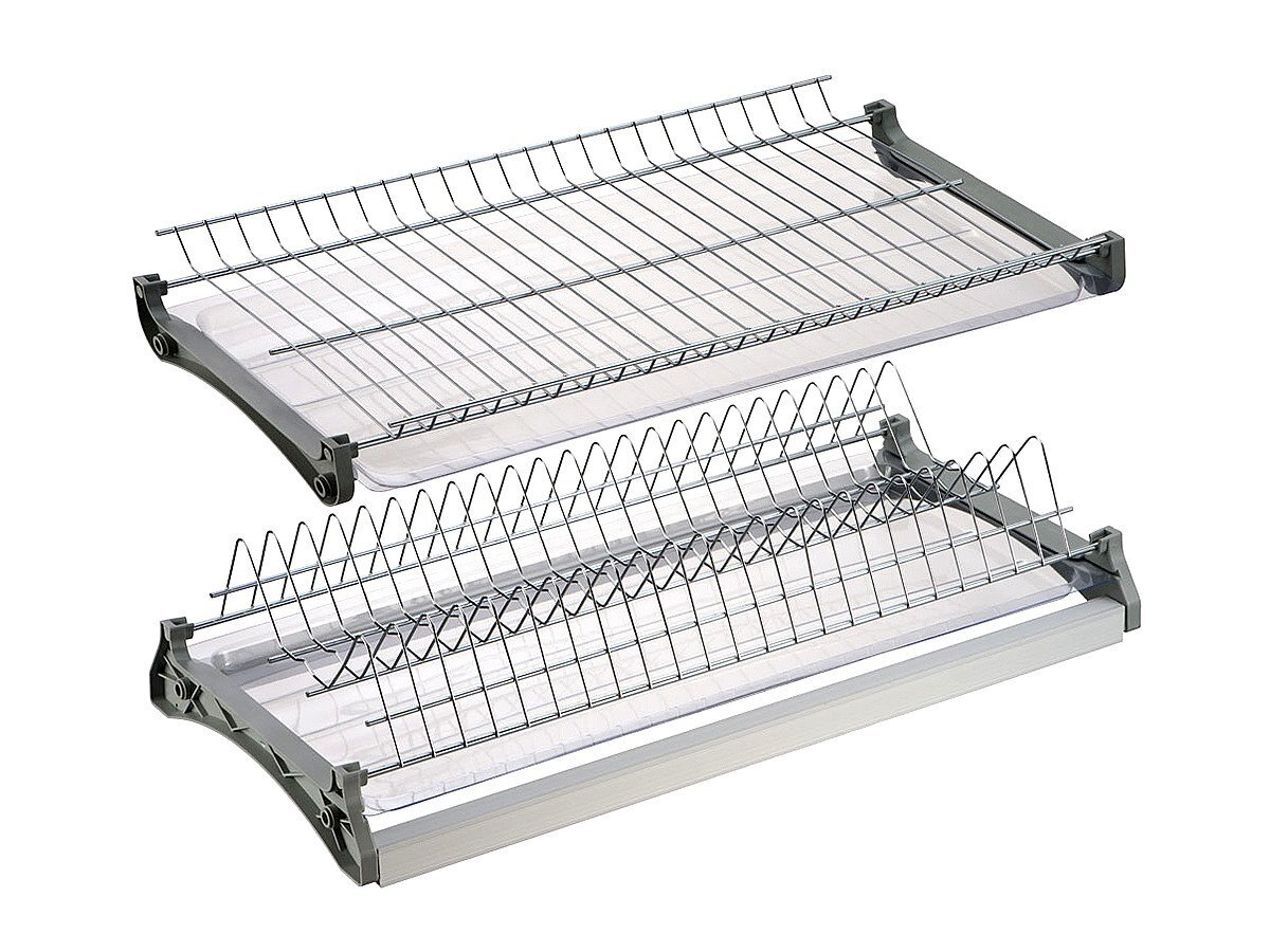 Надежная и удобная 2-х уровневая сушка встраивается в шкаф, полки изготовлены из нержавеющей стали с алюминиевым профилем. Предназначен для компактного хранения посуды.