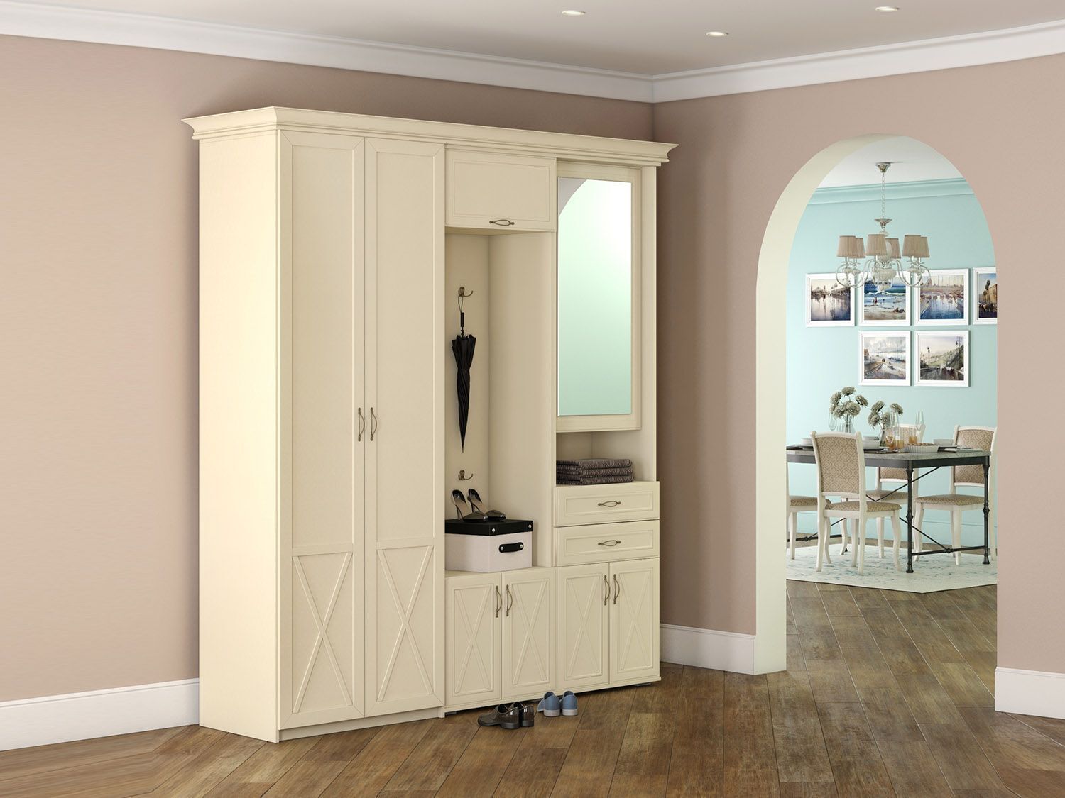 - Бэль Шкаф для прихожей + Карнизы 603/422 Слоновая кость