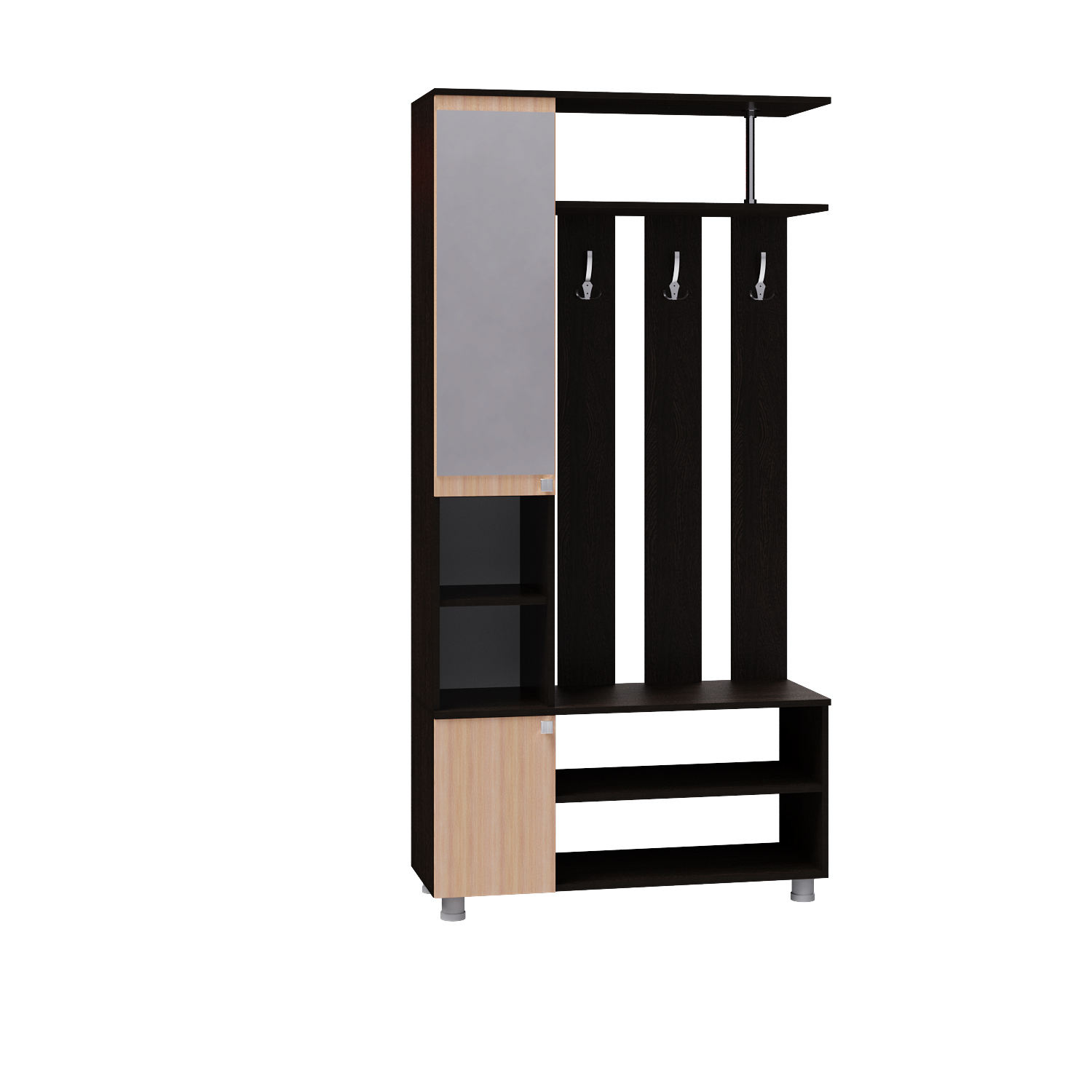 Первое впечатление о квартире формируется уже с порога, поэтому прихожая должна не только быть функциональной, но и радовать стильным оформлением, создавая атмосферу уюта для вас и ваших гостей. Отличным решением для небольших пространств станет мебельный комплекс «Эконом». В его конструкции предусмотрены крючки для верхней одежды, верхняя полка для головных уборов, закрытая секция со встроенным зеркалом, удобные полки для обуви и отделение с распашной дверцей.
