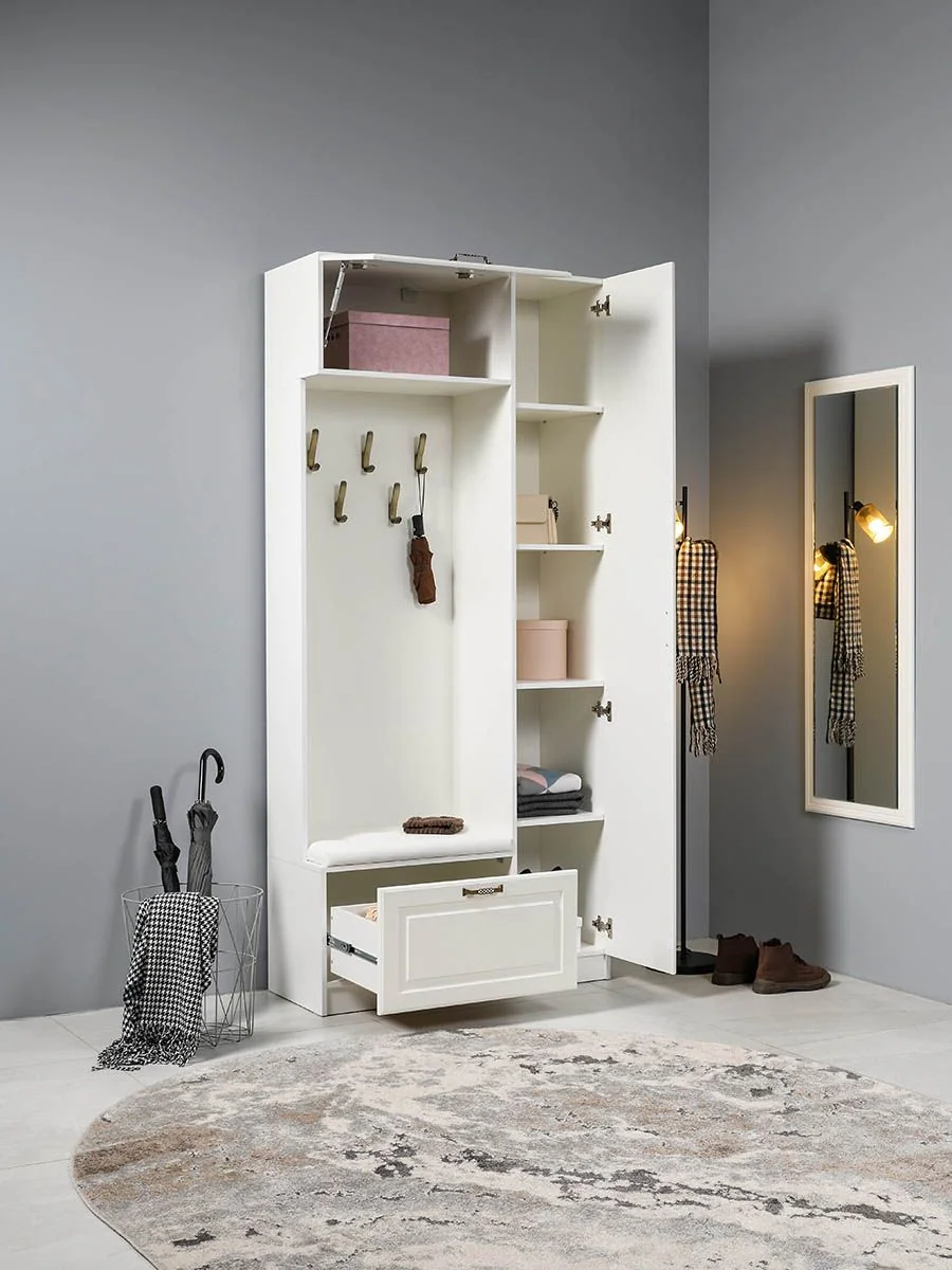 Прихожая Ливерпуль 13.21 Белый/Ясень ваниль - стильный комплект мебели для прихожей комнаты.