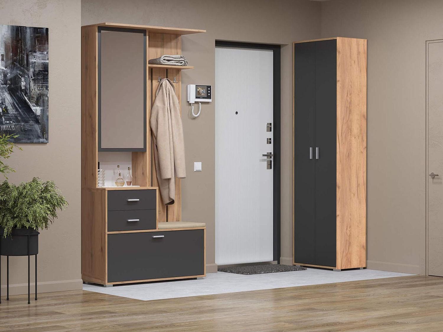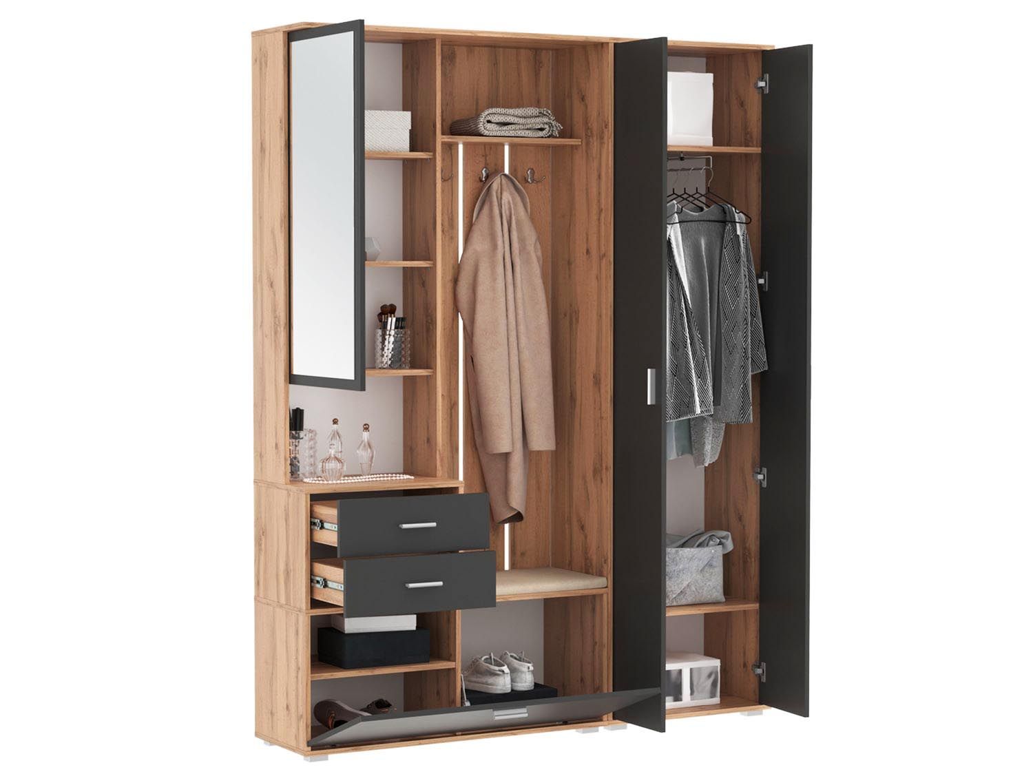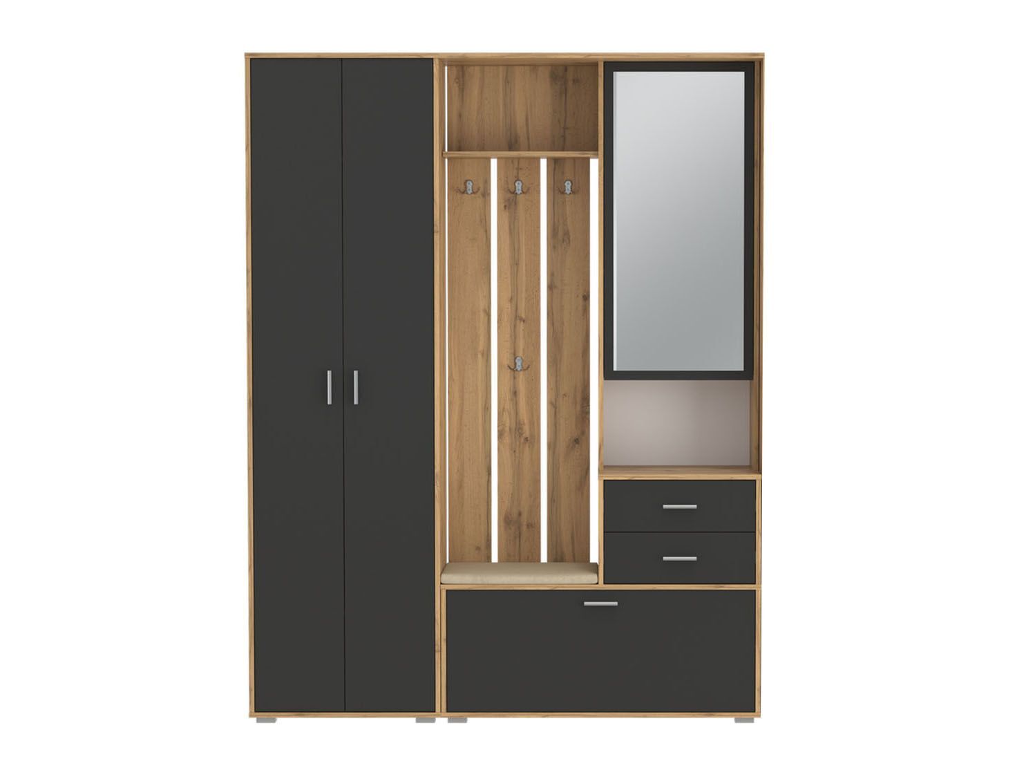 Прихожая модульная Антре 1 Дуб золотой / Диамант серый - стильное изделие для хранения верхней одежды.