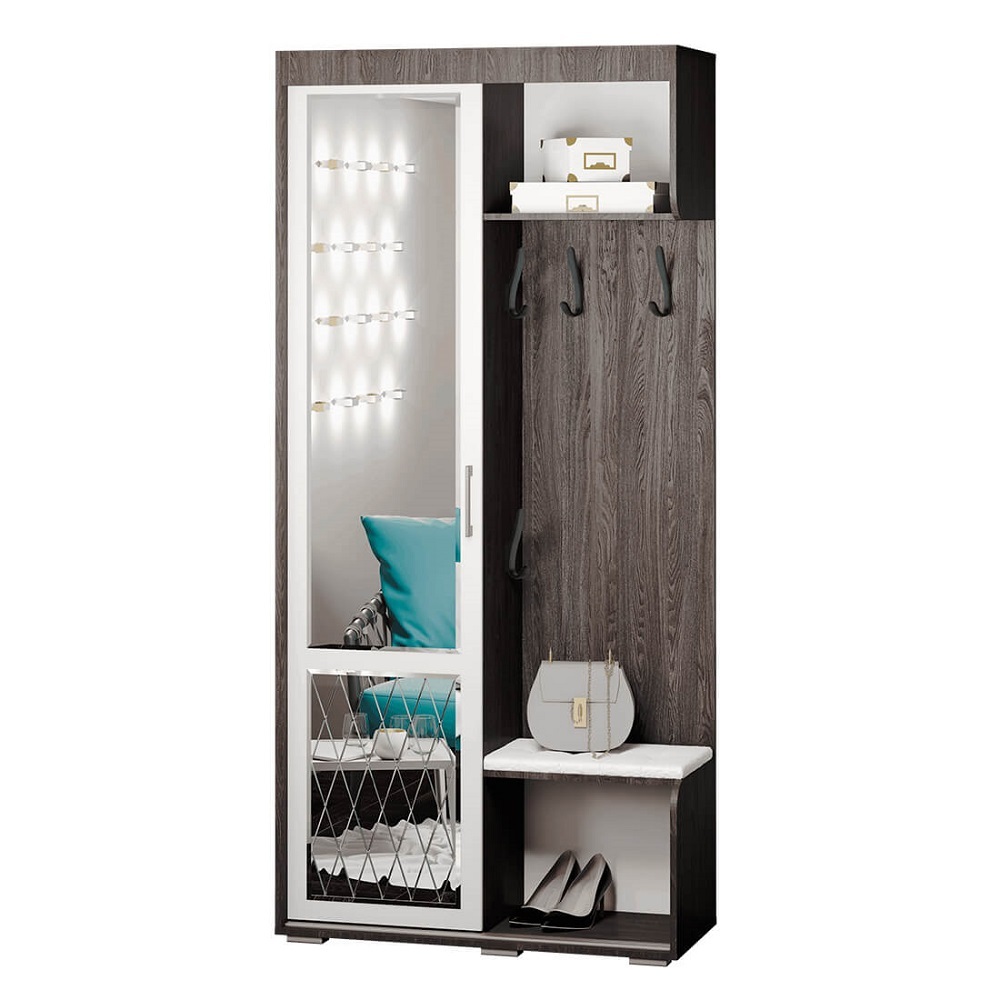 Прихожая Варда — идеальное решение для вашего коридора. Тёмный ясень и белый цвет придают ей стильный и современный вид. Благодаря удобной обувнице с сиденьем и компактным размерам прихожая легко впишется в любой интерьер. Внутреннее наполнение включает полку для головных уборов сверху и полку для обуви снизу, а также выдвижную евроштангу. Регулируемые опоры позволяют скрыть неровности пола.