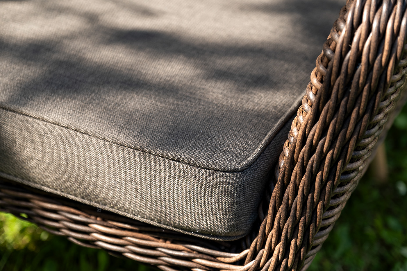 Каркас всей группы выполнен из прочного алюминия, который оплетен круглым искусственным ротангом. Цвет – коричневый.