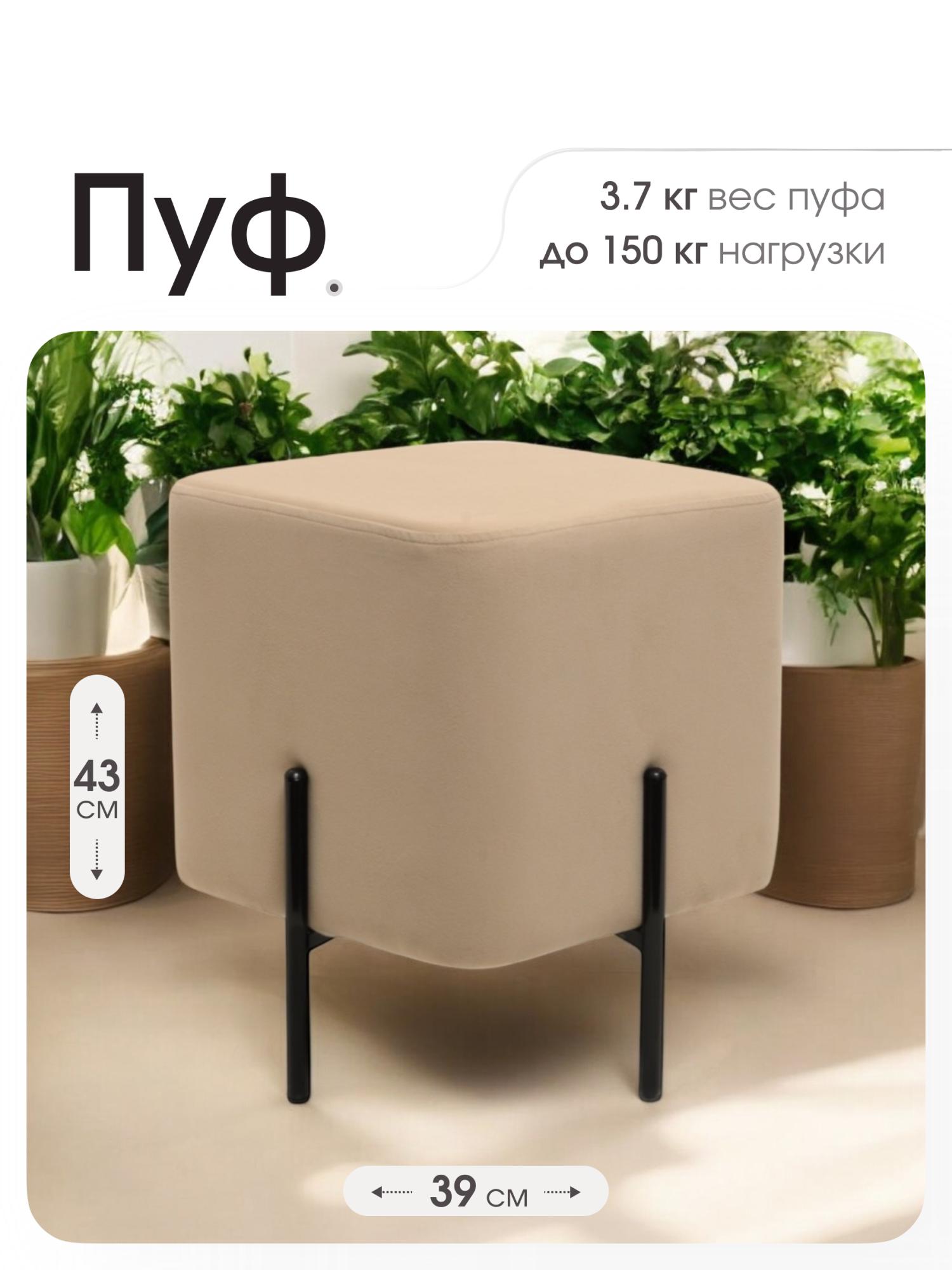 Пуф «Аликанте» - находка для ценителей минимализма. Габариты: Длина: 39 см Ширина: 39 см Высота: 43 см Квадратный пуфик выполнен из прочного ДСП высокого качества, выдерживает максимальную нагрузку в 150 кг. Пуф обтянут приятной велюровой тканью, которая легко чистится влажной губкой. Внутри плотный поролон, который сохраняет свою форму при длительной эксплуатации. Пуф стоит на четырёх металлических ножках, со специальными заглушками, которые позаботятся о Вашем напольном покрытии. Помимо прямого предназначения можно использовать как подставку для ног. Высокое качество материалов, из которых изготовлена модель, способствуют сохранению ее первозданного вида на протяжении очень длительного времени. На выбор четыре расцветки: бежевый, серый, коричневый и синий. Современная модель подойдёт не только для дома, но и для кафе, кофейни и ресторана. На данный товар распространяется гарантия 12 месяцев. Поставляются пуфы в гофрокоробе.