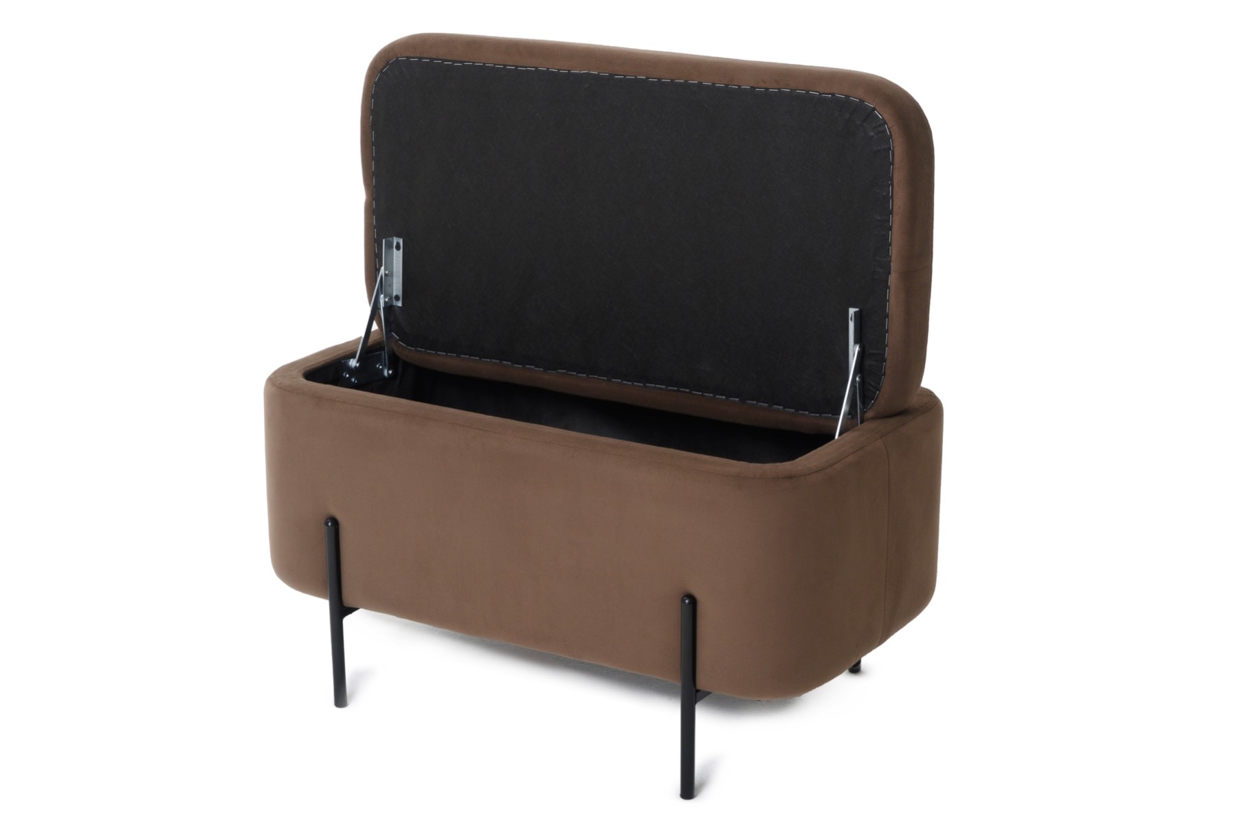 Размер: длина: 75 см ширина: 40 см высота: 43 см Наличие ящика для хранения с откидным верхом, может использоваться вместо тумбочки в детской комнате или для хранения полезных мелочей в прихожей. Дизайнерский пуфик прекрасно дополнит интерьер как в прихожей, так в гостиной или детской. Обивка – износостойкий велюр. Опоры пуфа металлические и очень прочные и выполнены в классическом стиле. Корпус модели выполнен из прочного ДСП высокого качества, благодаря чему банкетка выдерживает большой вес. Наполнение банкетки – мягкий поролон. На данный товар распространяется гарантия 12 месяцев. Поставляются пуфы в гофрокоробе.