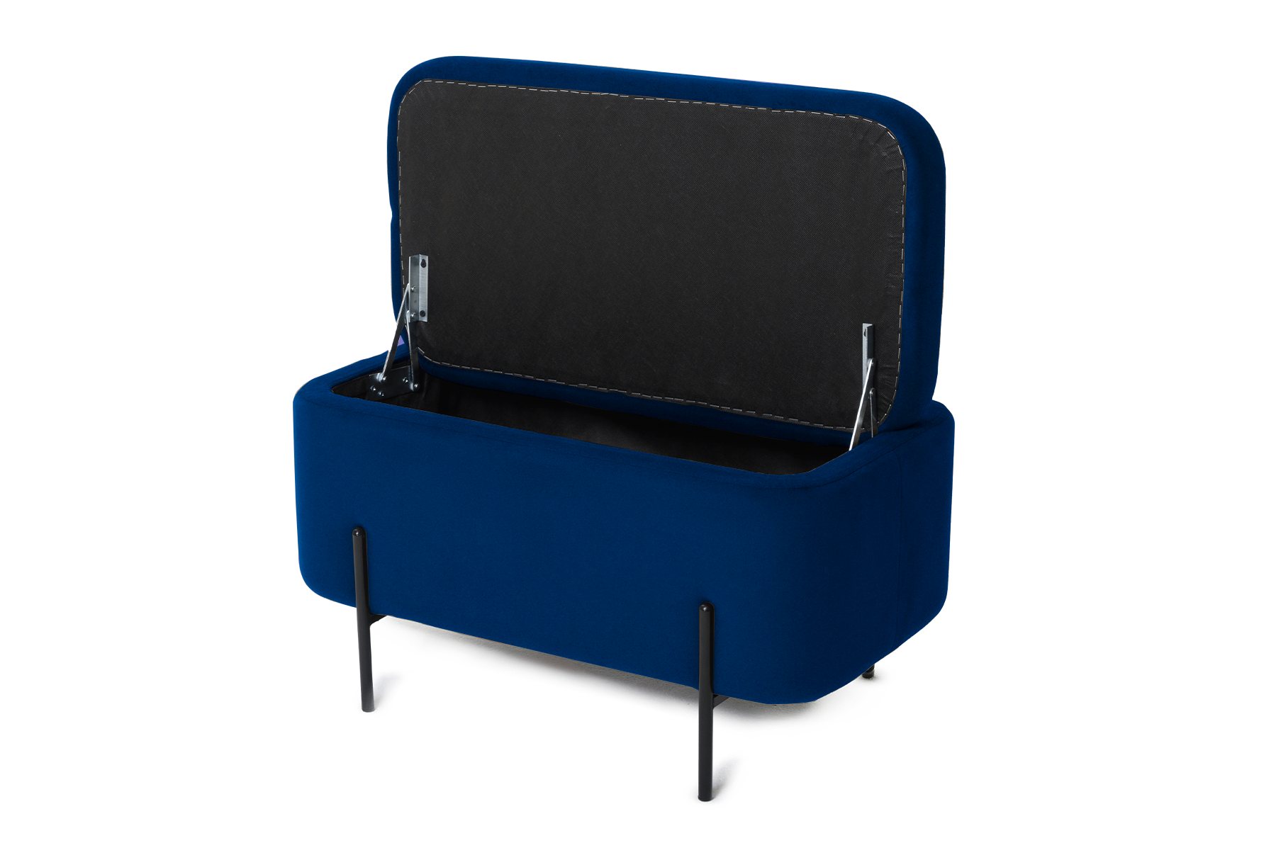 Размер: длина: 75 см ширина: 40 см высота: 43 см Наличие ящика для хранения с откидным верхом, может использоваться вместо тумбочки в детской комнате или для хранения полезных мелочей в прихожей. Дизайнерский пуфик прекрасно дополнит интерьер как в прихожей, так в гостиной или детской. Обивка – износостойкий велюр. Опоры пуфа металлические и очень прочные и выполнены в классическом стиле. Корпус модели выполнен из прочного ДСП высокого качества, благодаря чему банкетка выдерживает большой вес. Наполнение банкетки – мягкий поролон. На данный товар распространяется гарантия 12 месяцев. Поставляются пуфы в гофрокоробе.