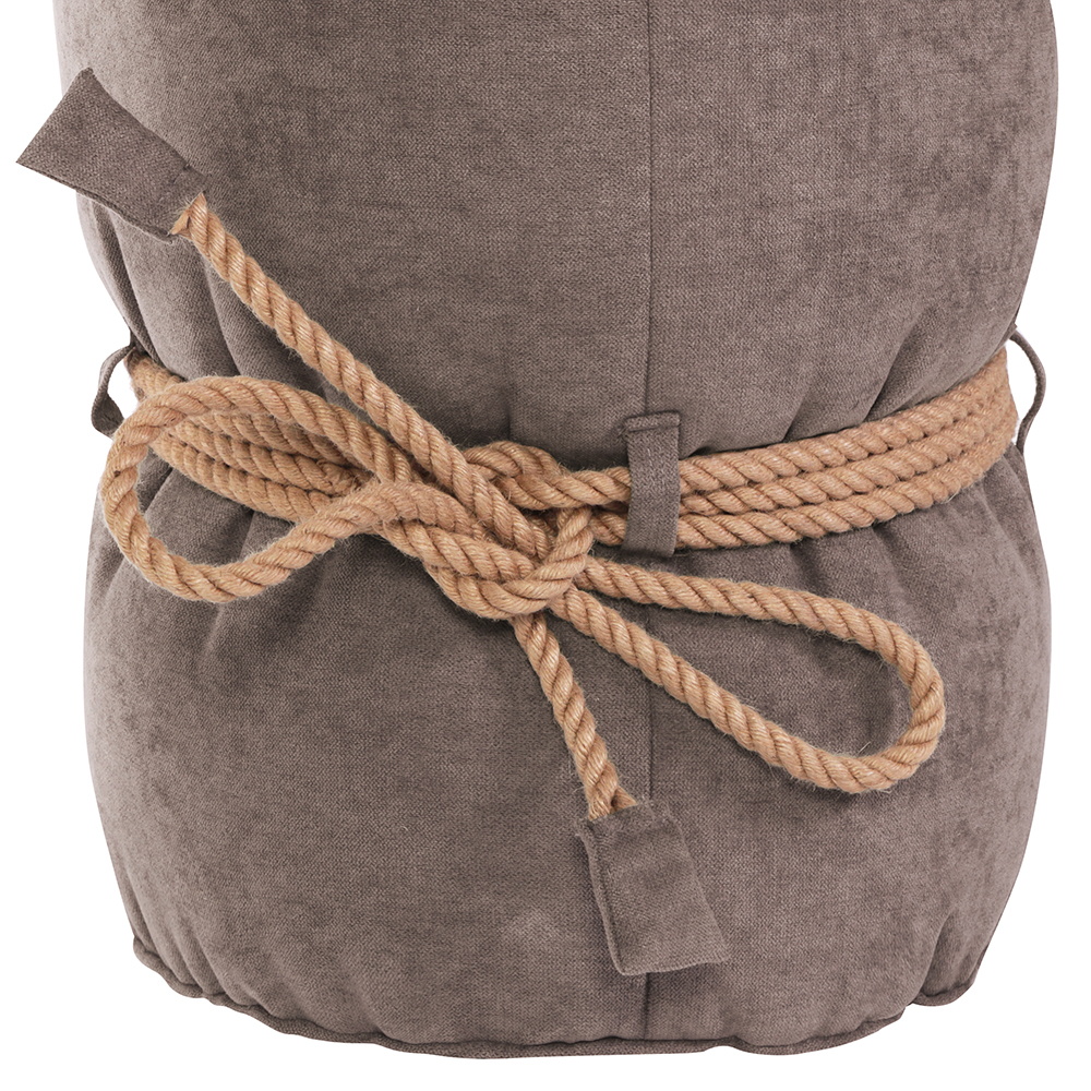Кнехт декорирован джутовым канатом, обвязанным вокруг своей оси. Вы можете самостоятельно придумать узел, и сделать свой пуф еще интереснее.