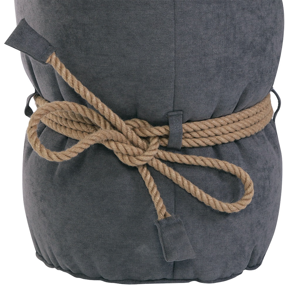 Кнехт декорирован джутовым канатом, обвязанным вокруг своей оси. Вы можете самостоятельно придумать узел, и сделать свой пуф еще интереснее.