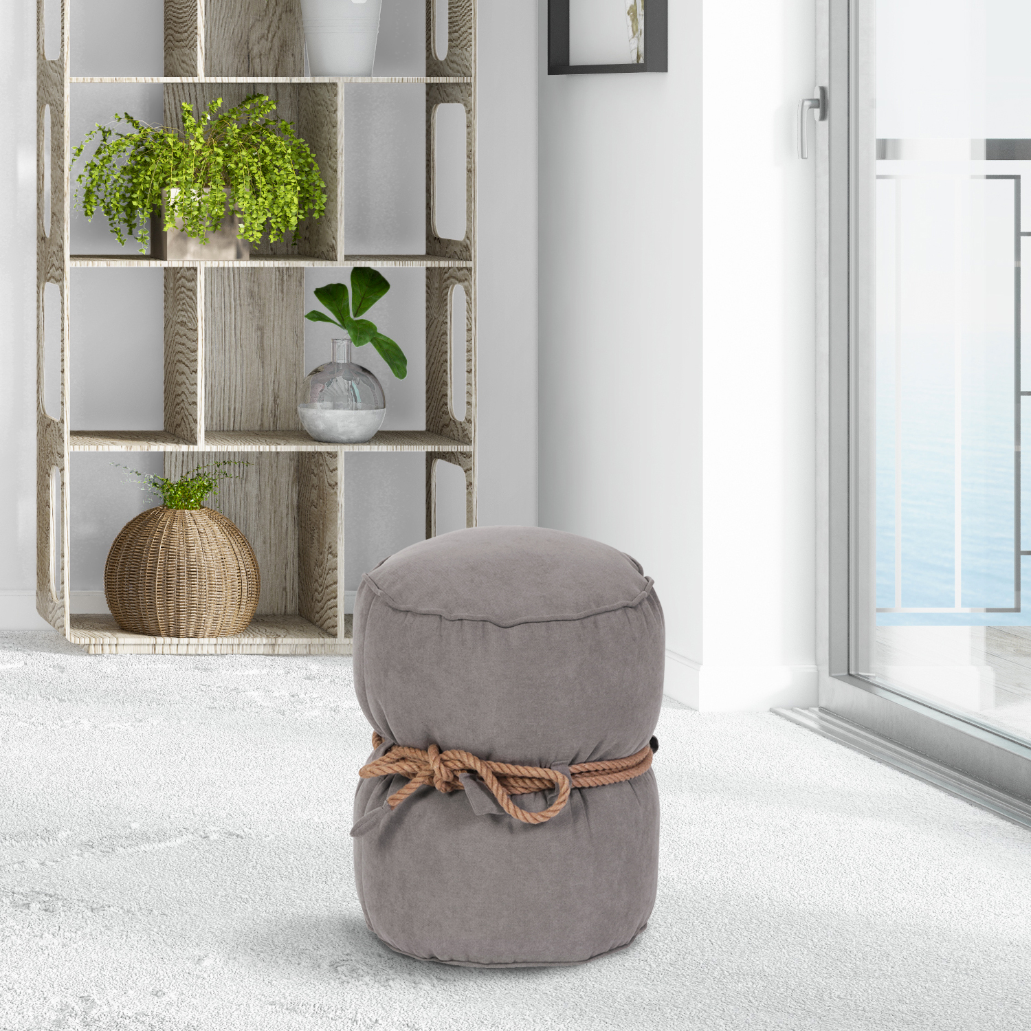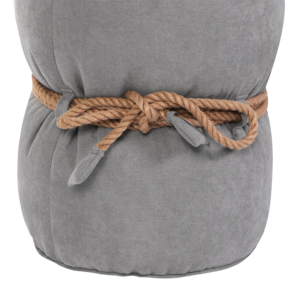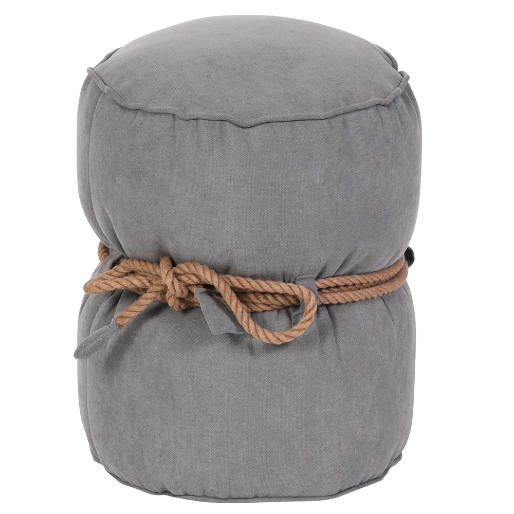 Кнехт декорирован джутовым канатом, обвязанным вокруг своей оси. Вы можете самостоятельно придумать узел, и сделать свой пуф еще интереснее.