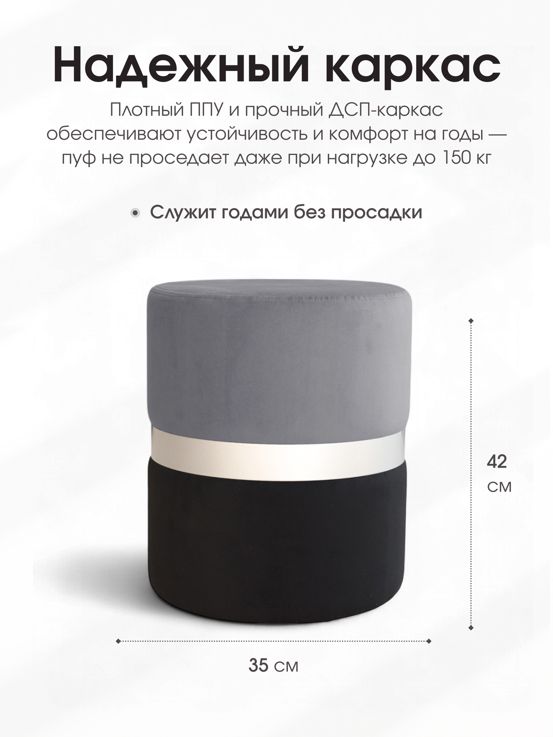 Пуф “Колорадо” - находка для ценителей минимализма. Размер: Длина: 35 см Ширина: 35 см Высота: 42 см Материал наружной ткани – мягкий велюр. Обивка крайне прочная, практичная и износостойкая. Наполнение банкетки – прочный поролон, обитый стёганным велюром. Корпус пуфа выполнен из прочного ДСП, благодаря чему он выдерживает вес до 150 кг. Металлический обруч посередине пуфа, выступает в виде декора. Пуф прекрасно дополнит интерьер любого уголка вашего дома, подойдёт: как в прихожую, так в гостиную или детскую. Большое разнообразие цветов позволит создать индивидуальное дизайнерское решение. Пуф Колорадо имеет все необходимые сертификаты качества. На данный товар распространяется гарантия 12 месяцев. Поставляются пуфы в гофрокоробе.
