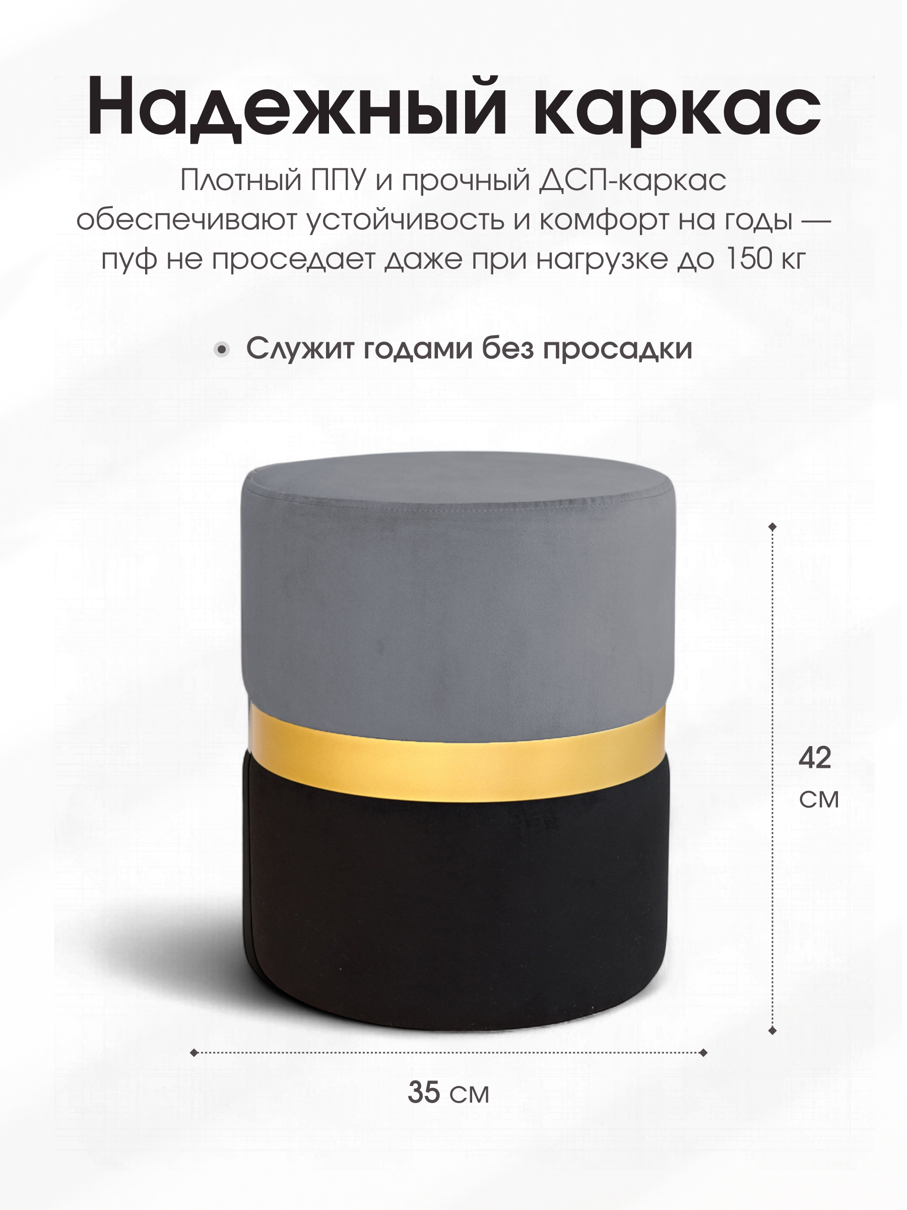 Пуф “Колорадо” - находка для ценителей минимализма. Размер: Длина: 35 см Ширина: 35 см Высота: 42 см Материал наружной ткани – мягкий велюр. Обивка крайне прочная, практичная и износостойкая. Наполнение банкетки – прочный поролон, обитый стёганным велюром. Корпус пуфа выполнен из прочного ДСП, благодаря чему он выдерживает вес до 150 кг. Металлический обруч посередине пуфа, выступает в виде декора. Пуф прекрасно дополнит интерьер любого уголка вашего дома, подойдёт: как в прихожую, так в гостиную или детскую. Большое разнообразие цветов позволит создать индивидуальное дизайнерское решение. Пуф Колорадо имеет все необходимые сертификаты качества. На данный товар распространяется гарантия 12 месяцев. Поставляются пуфы в гофрокоробе.