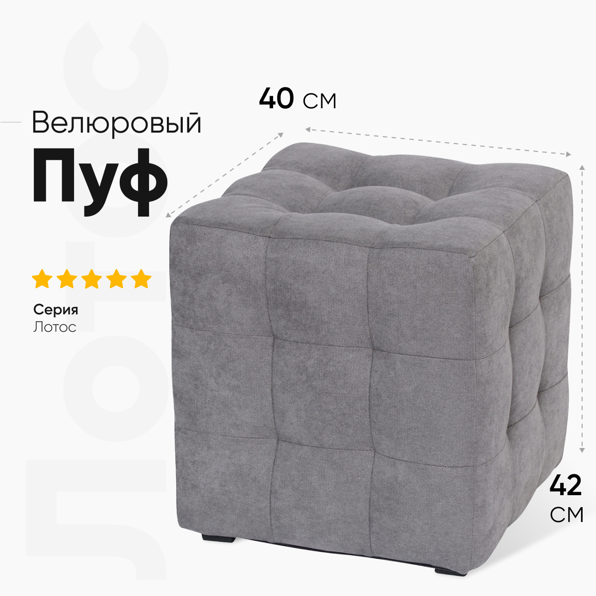 Размер: длина: 40 см ширина: 40 см высота: 42 см Пуф Лотос, разработанный российским производителем изготовлена из высококачественных, экологически чистых материалов. Ее обивка выполнена в стандартных цветах и идеально впишется в любой интерьер. Обивка - велюр Easy Way Clean. Он легко поддается чистке без использования химии. Модель выполнена в классическом дизайне, который подойдет практически к любому интерьеру. Вы можете разместить данный пуф в прихожую, также отлично подойдет банкетка для коридора. Квадратная форма пуфа является одним из самых актуальных и востребованных вариантов на протяжении уже многих лет. Пуф станет великолепным дополнением к любому дизайну квартиры. Его можно разместить в любой комнате. Больше всего подойдет банкетка в гостиную. Высокое качество материалов, из которых изготовлена модель, способствуют сохранению ее первозданного вида на протяжении очень длительного времени. Максимальная нагрузка на пуф - 100 кг. На данный товар распространяется гарантия 12 месяцев. Поставляются пуфы в гофрокоробе.