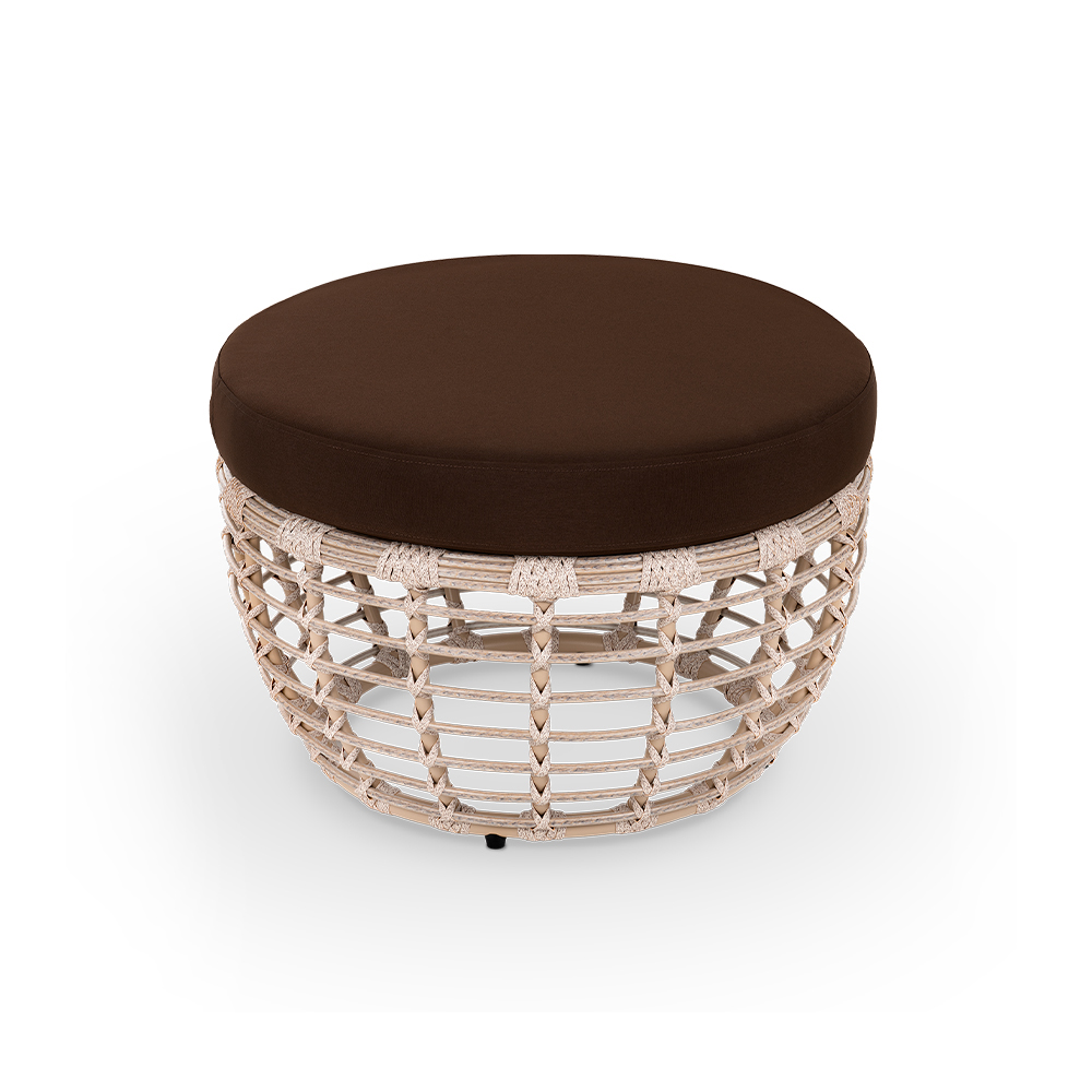 Компактный и универсальный элемент коллекции. Прочный алюминиевый каркас и аккуратное плетение придают модели лёгкость и устойчивость. Пуф может использоваться как дополнительное сиденье или как небольшой столик. Практичное решение для современных террас и зон отдыха.