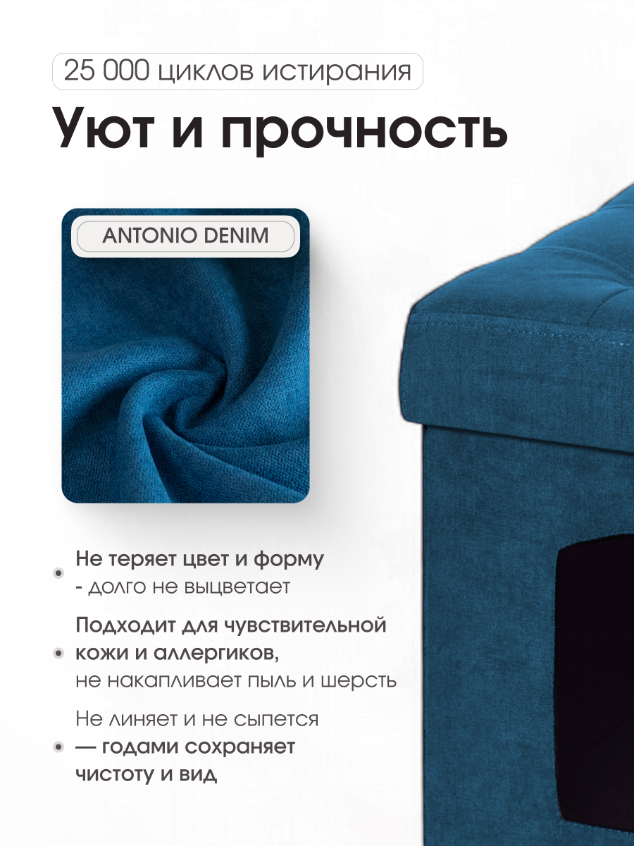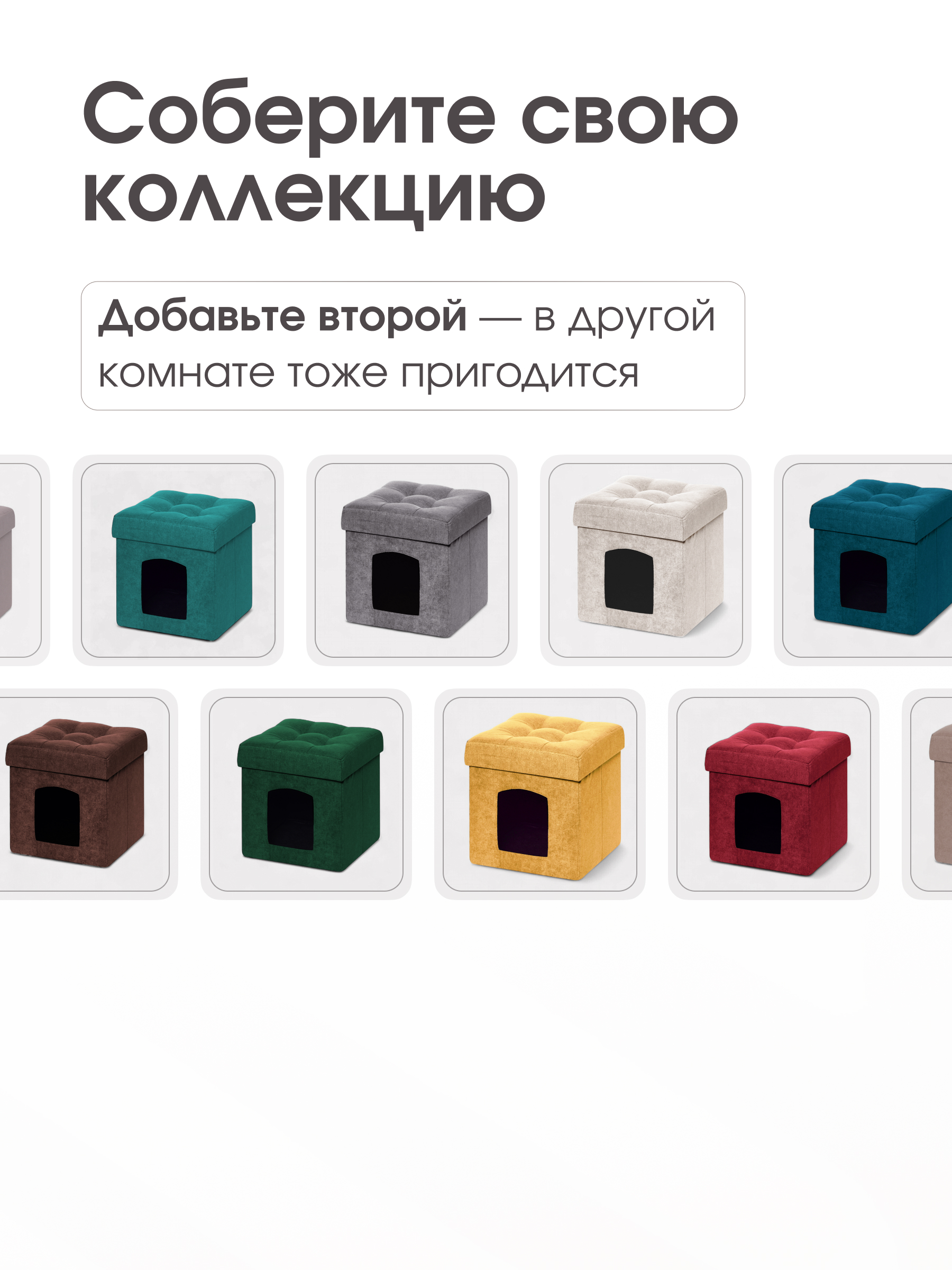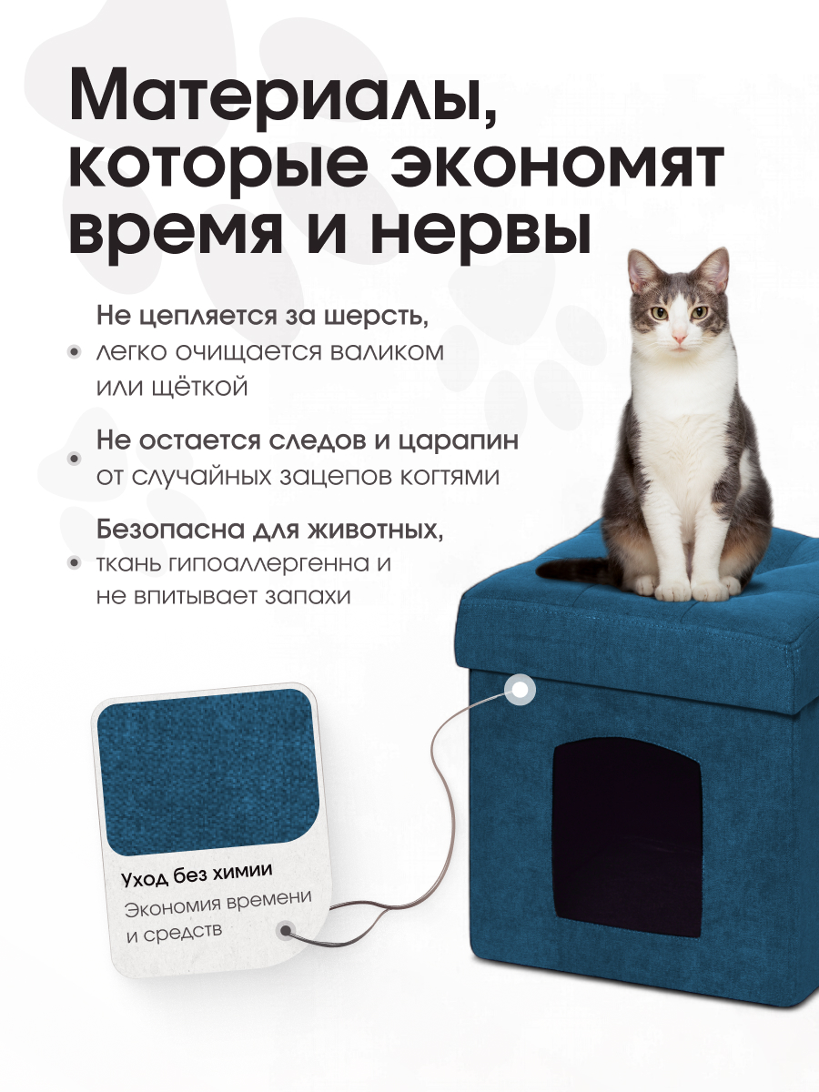Характеристики пуфа: Материал – велюр EasyWay Clean. Материал легко чистится без моющих химических средств. Каркас – МДФ. Размер в собранном виде – 37*37*40 см Размер в сложенном виде – 37*37*7 см Выдерживает вес до 100 кг. Складной пуфик для животных – подойдет тем, кому важна многофункциональность мебели. Органично впишется в небольшую квартиру! Пуфик полностью складывается в свою же крышку, поэтому совсем не занимает места у вас дома. В собранном виде внутри у него достаточно места для кошки или небольшой собаки. Можно устроить там лежанку или использовать как есть. Рекомендуем вам использовать пуф для прихожей или гостиной, где нужно место, чтобы присесть, а питомцу – полежать. Домашние животные любят чувство защищенности, поэтому котики так часто залезают в коробки. Складной пуф для хранения закрыт со всех сторон, кроме единственной стенки, поэтому все питомцы с радостью проводят в нем время и спят без беспокойств. Такой складной пуф трансформер подойдет для путешествий со своим животным: небольшие размеры и компактность делают решающий выбор. Поэтому рекомендуем купить качественный пуф, который будет служить вам очень и очень долго! На всю продукцию гарантия 12 месяцев.