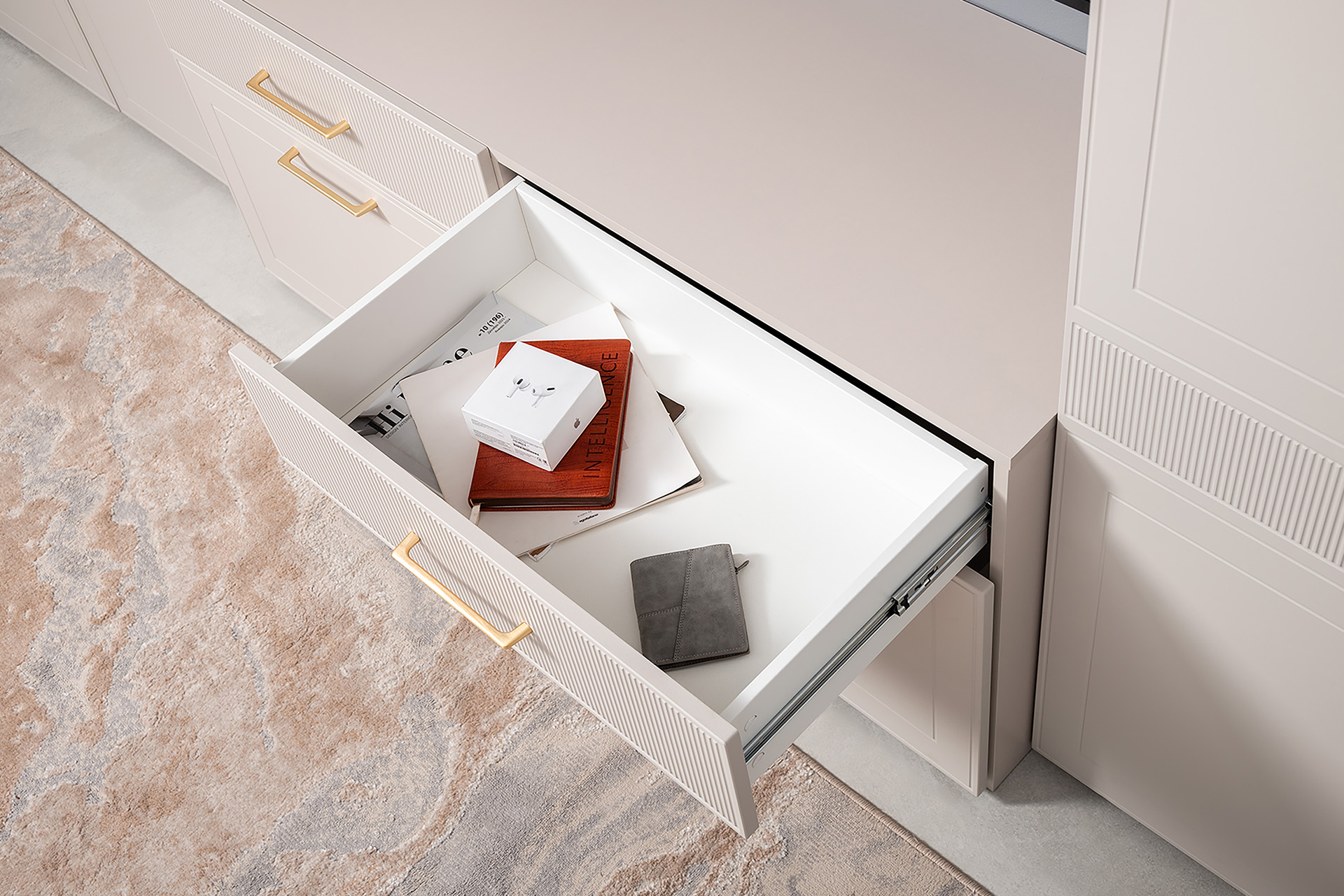 Конструкция с 4-я выдвижными ящиками полного выдвижения.