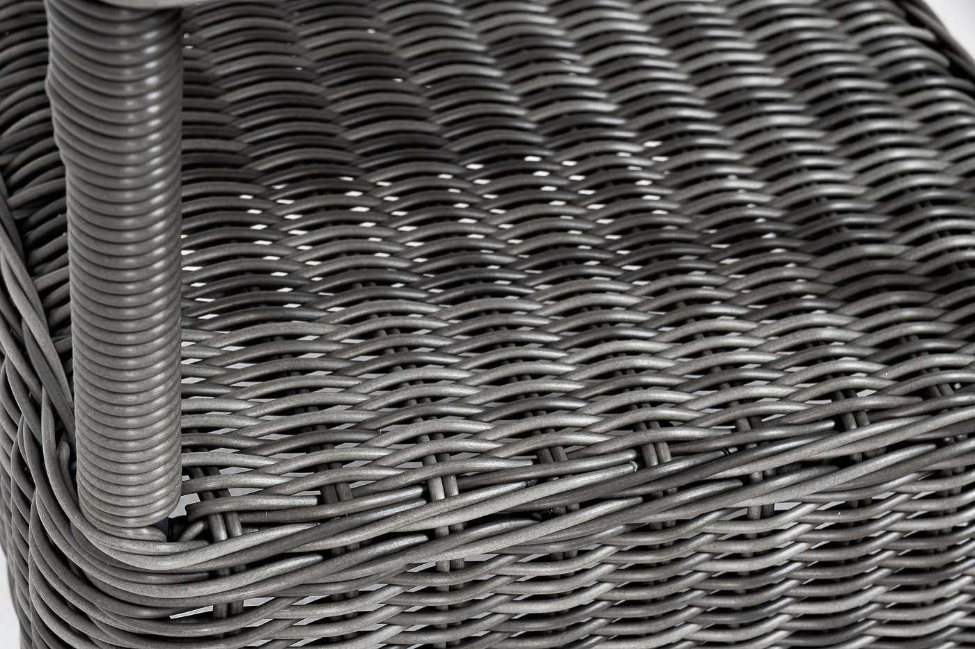 Мебельные изделия выполнены из круглого искусственного ротанга графитового цвета. Легкость и прочность обеспечивает каркас из алюминия, который способен выдержать до 150 кг.