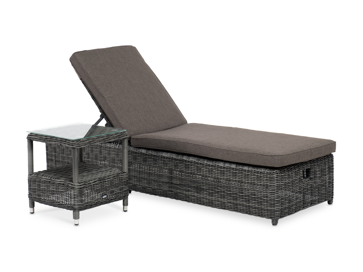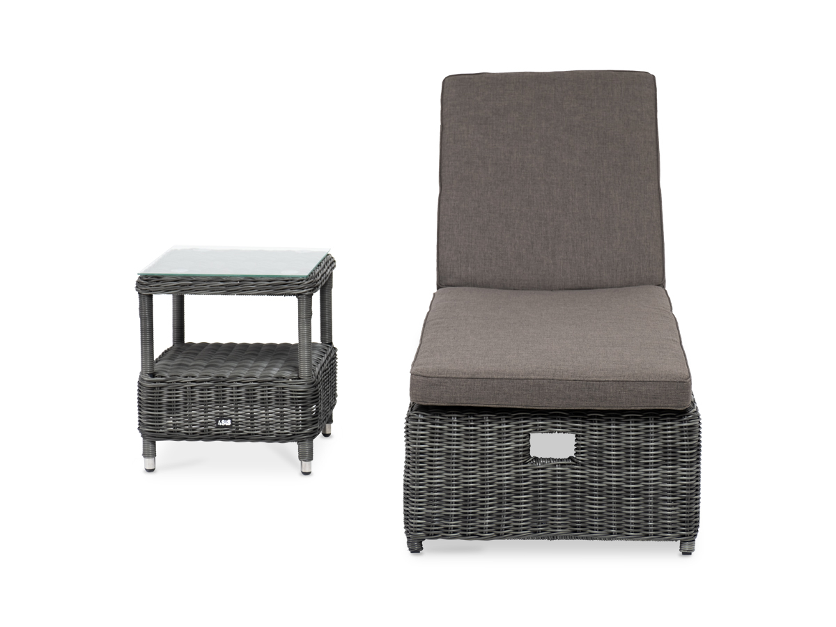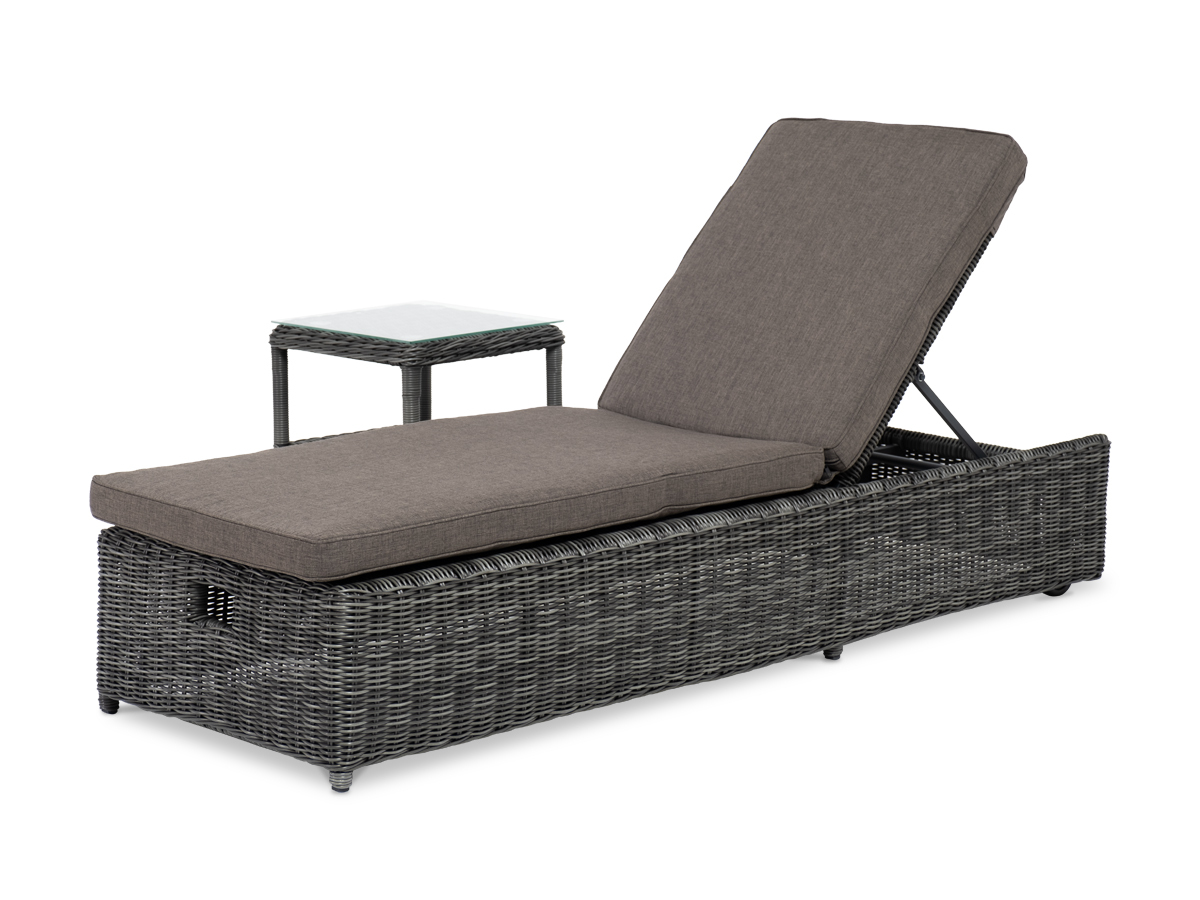 "Рим" шезлонг с подушкой, цвет графит 1шт. 1 990Х660Х310, "Форио" столик кофейный из искусственного ротанга, цвет графит 1шт. 450Х450Х520,