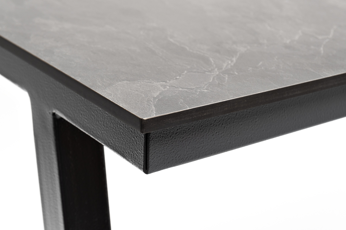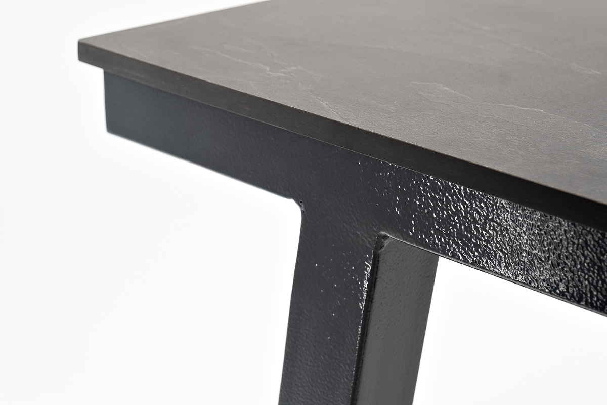 Размер стола - 1400×700×1100 мм. Столешница изготовлена из компакт-пластика HPL c рисунком цвета «серый гранит».