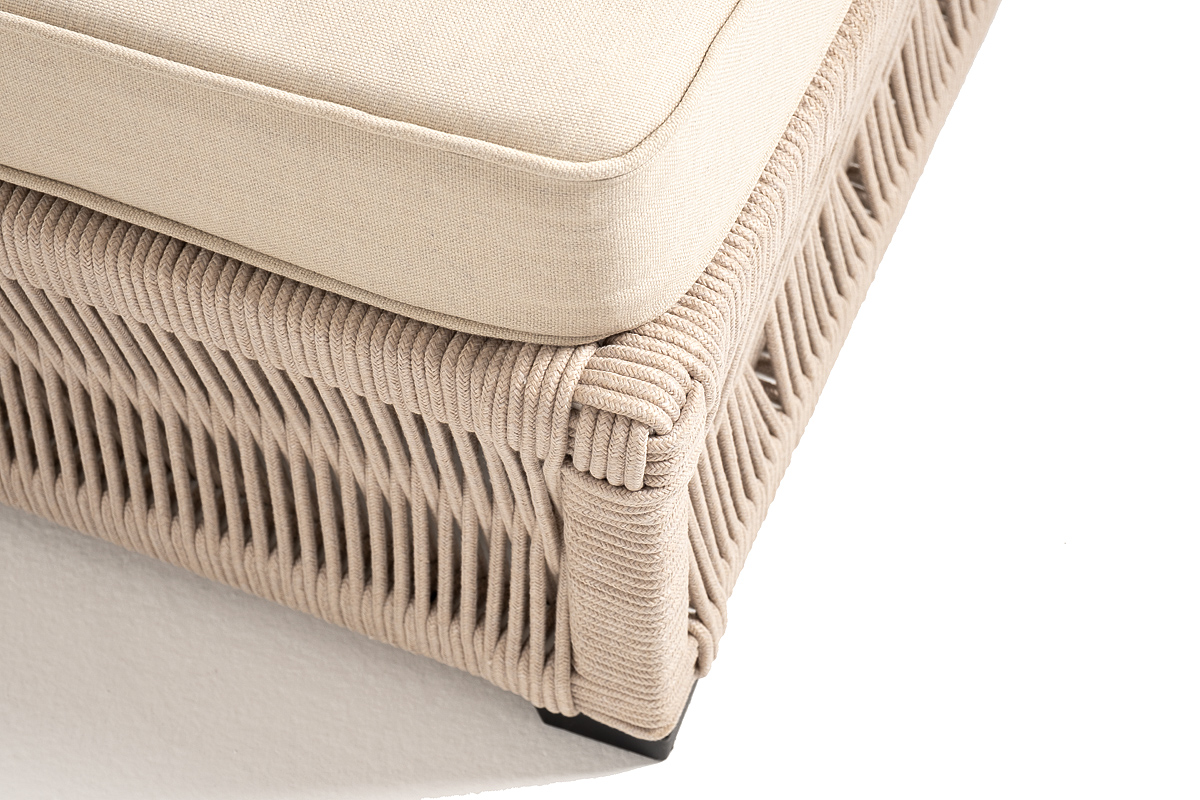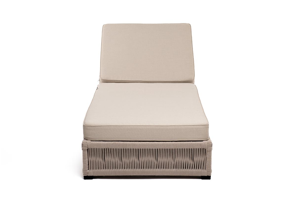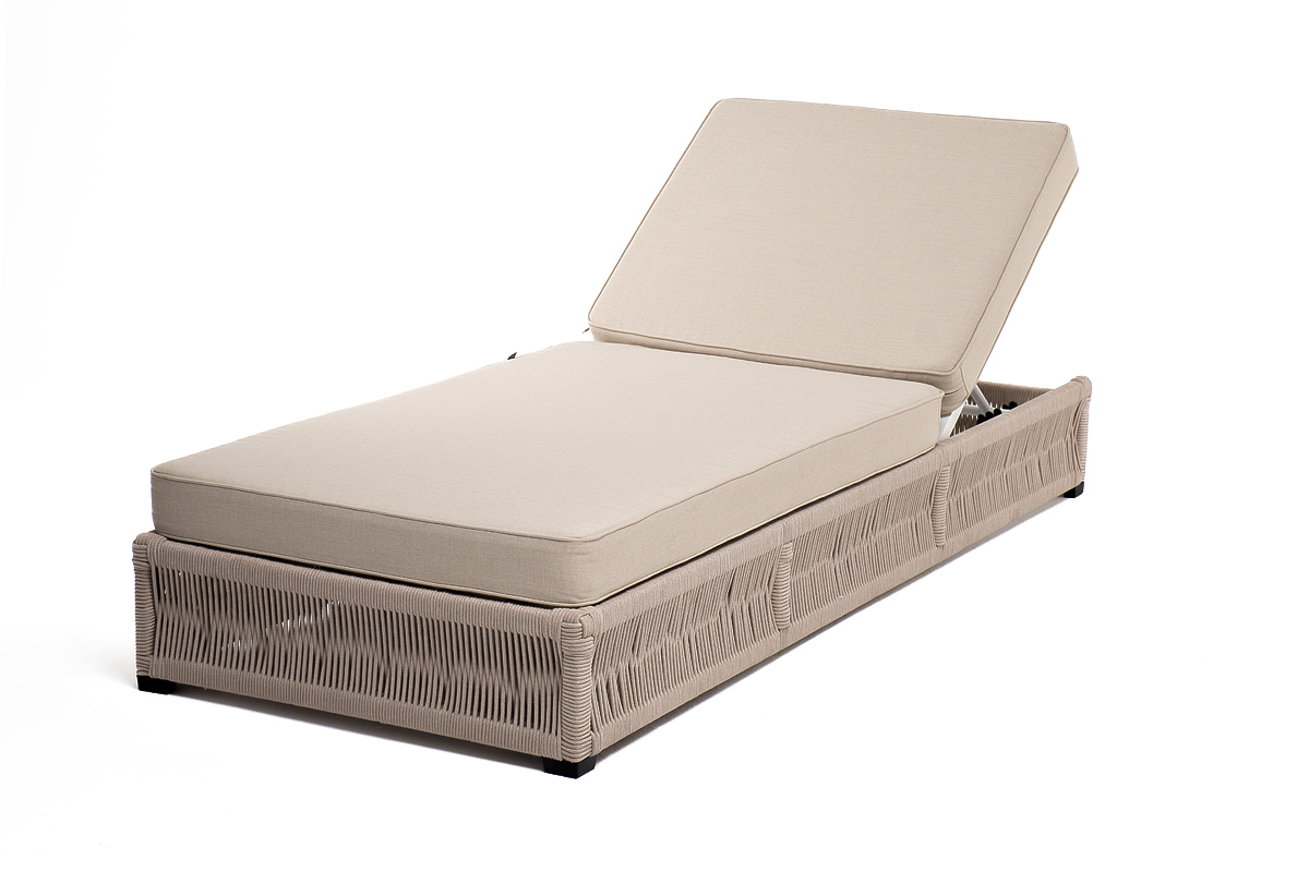 «Ривьера» плетеный шезлонг из роупа бежевого оттенка прекрасно дополнит пространство для отдыха на открытом воздухе.