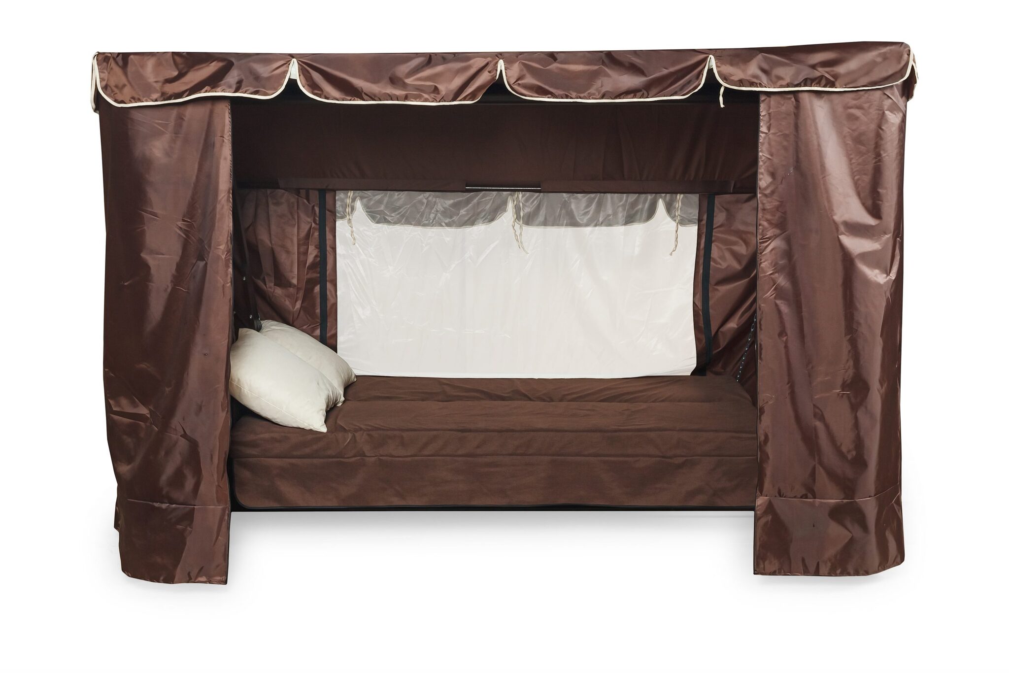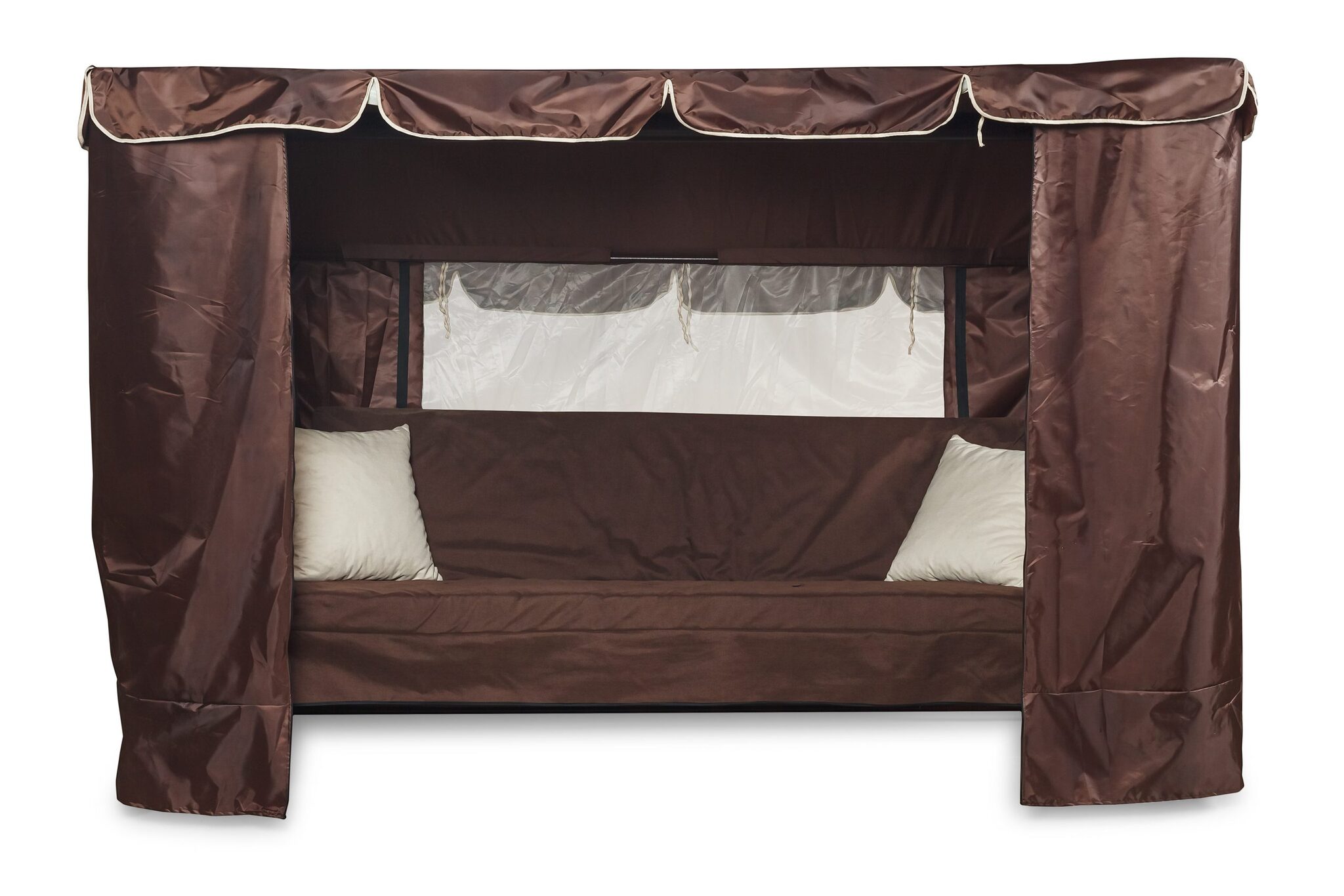 Качели изготовлены из качественных материалов, а несущая труба диаметром 76 мм обеспечивает прочность и долговечность конструкции. Особенностью модели является возможность раскладывания в кровать, что позволяет использовать качели не только для отдыха сидя, но и для комфортного сна.