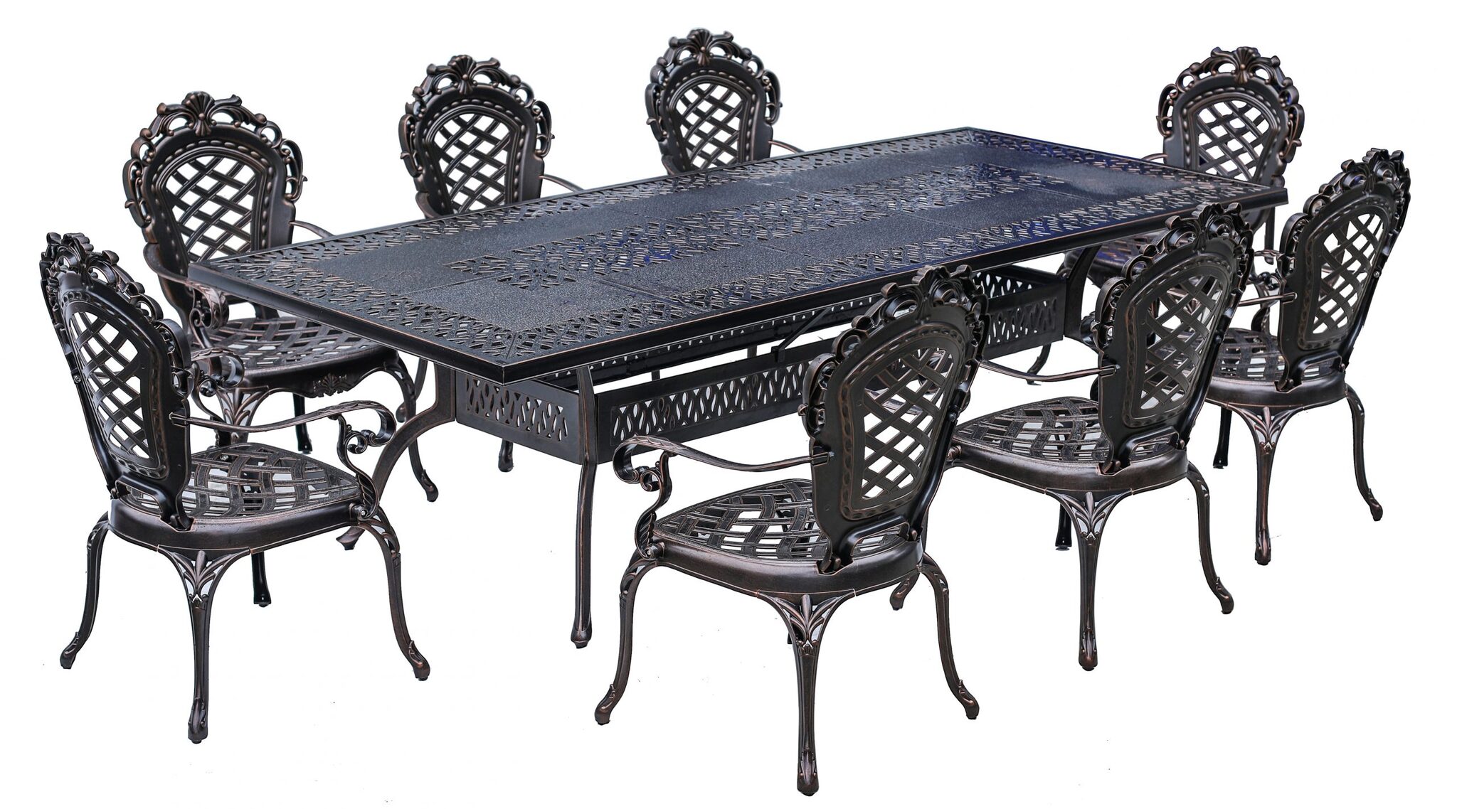 Обеденный комплект из литого алюминия «Секвойя» («Sequoia») 265х113 арт.6367 + 8 кресел «Финляндия» — это стильный и функциональный набор мебели, который идеально подойдёт для отдыха на свежем воздухе.
