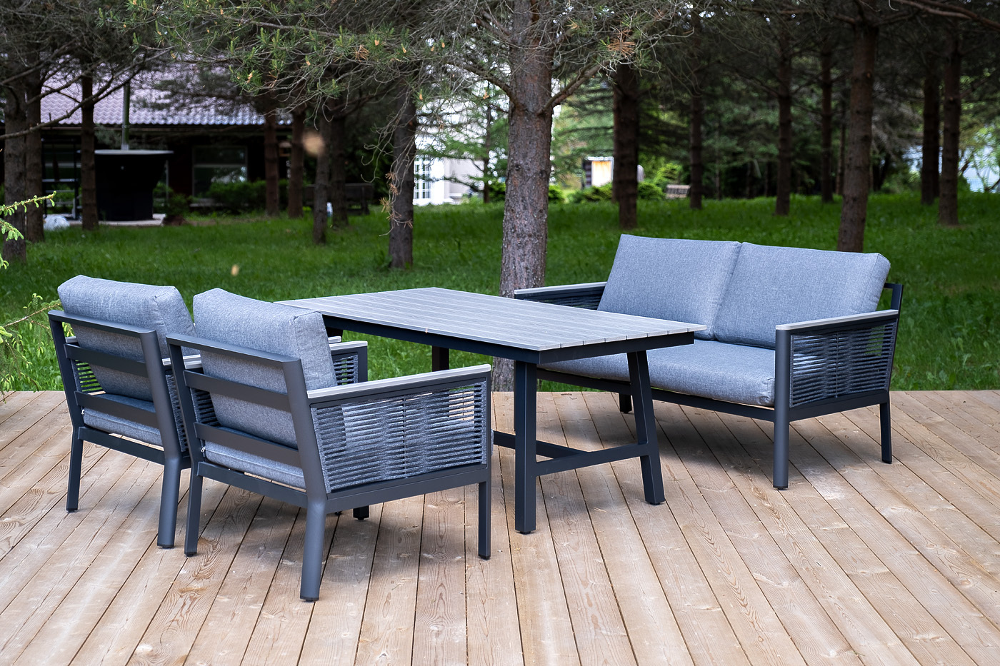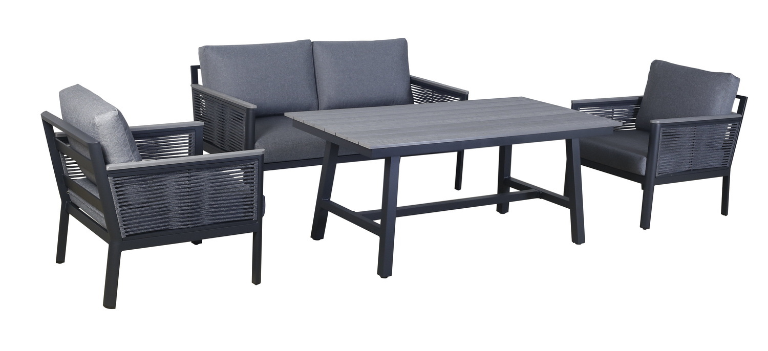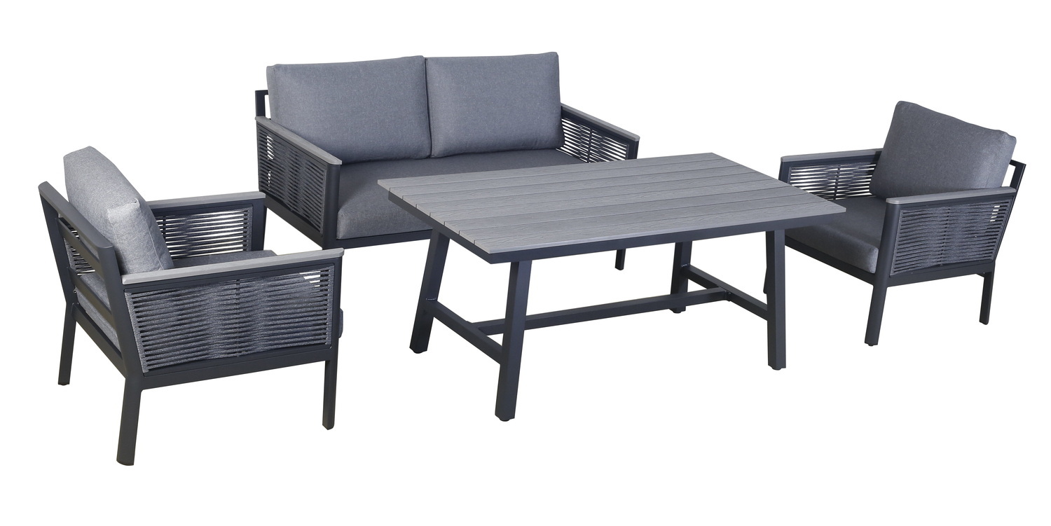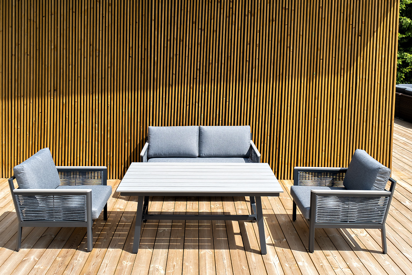 «Сан Ремо» лаунж-зона, алюминиевый каркас серый цвета, вручную оплетенный роупом серого цвета.